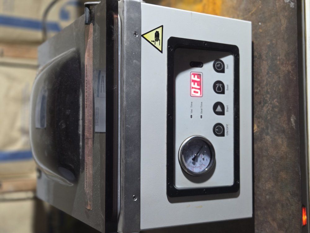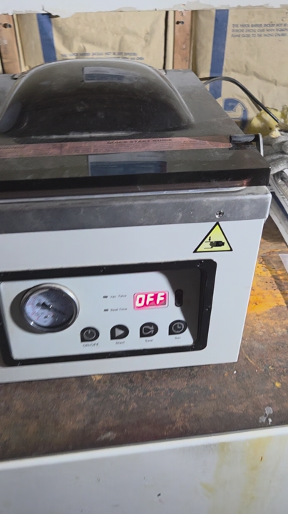 Lock your finest cuts and most coveted critters down like Fort Knox with our top-of-the-line Chamber Vacuum Sealer. Producing a protective seal unmatched in the industry, it’ll handle your high-volume projects without overheating and turn any table into a bona fide meat-packing operation. Comes equipped with an adjustable seal time, adjustable vacuum, pressure gauge, and digital time readout. Its manual seal mode produces the perfect seal for anything, every time. $700. msg for the video of it working- it wont load on here.