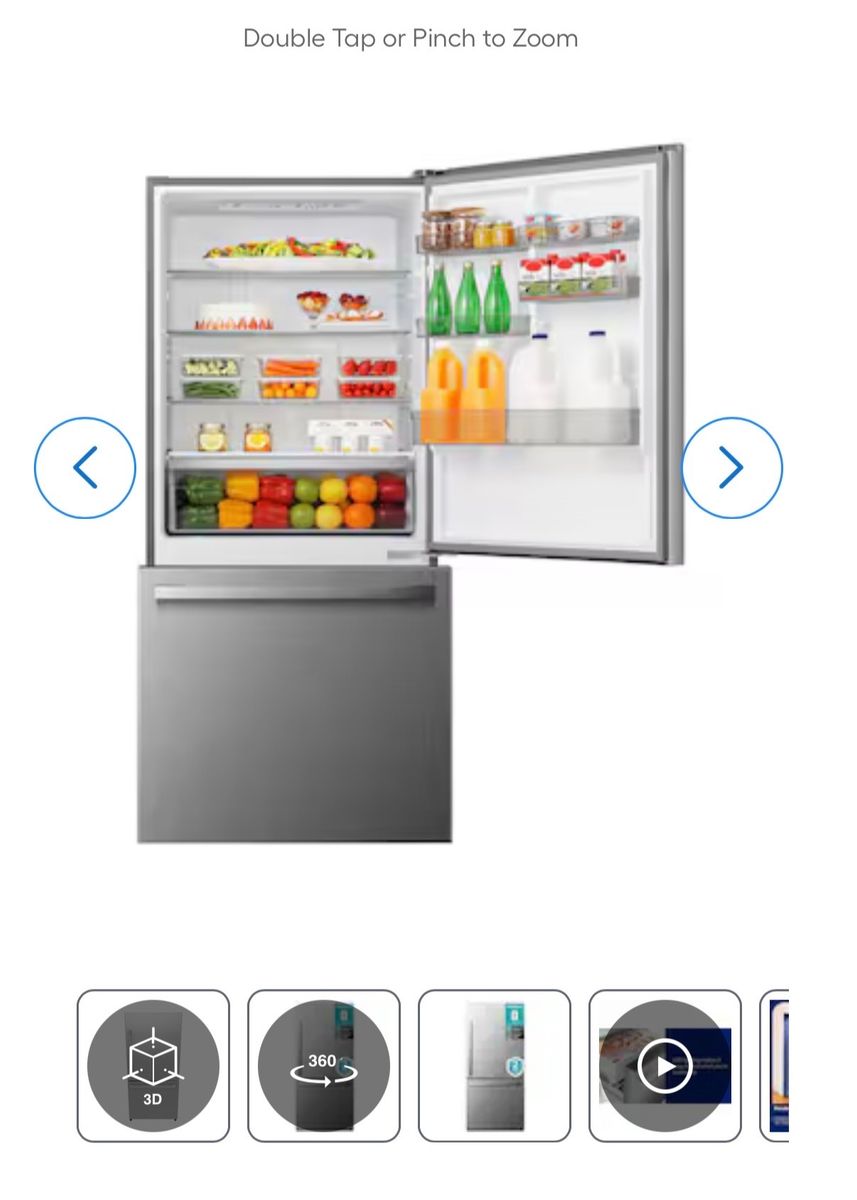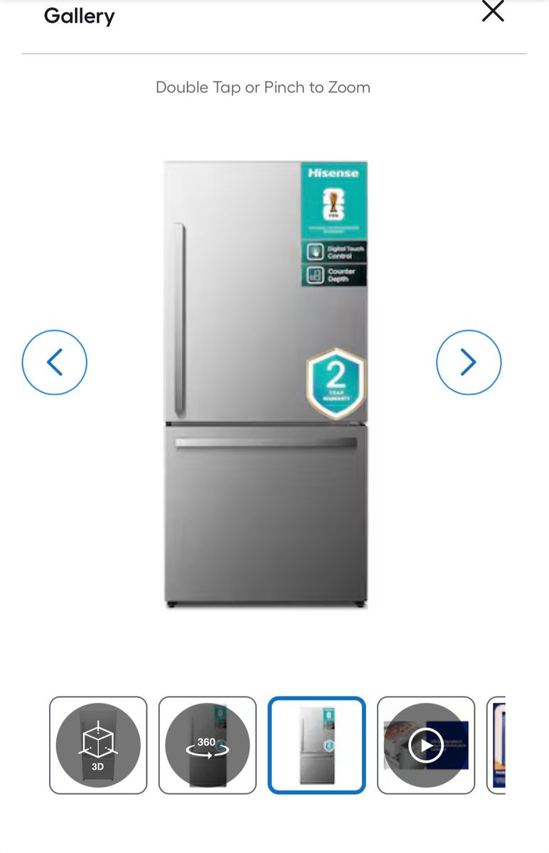 ZelleHisense refrigerator and drawer freezer. Less than a year old. 69” tall 31” wide 27” depth