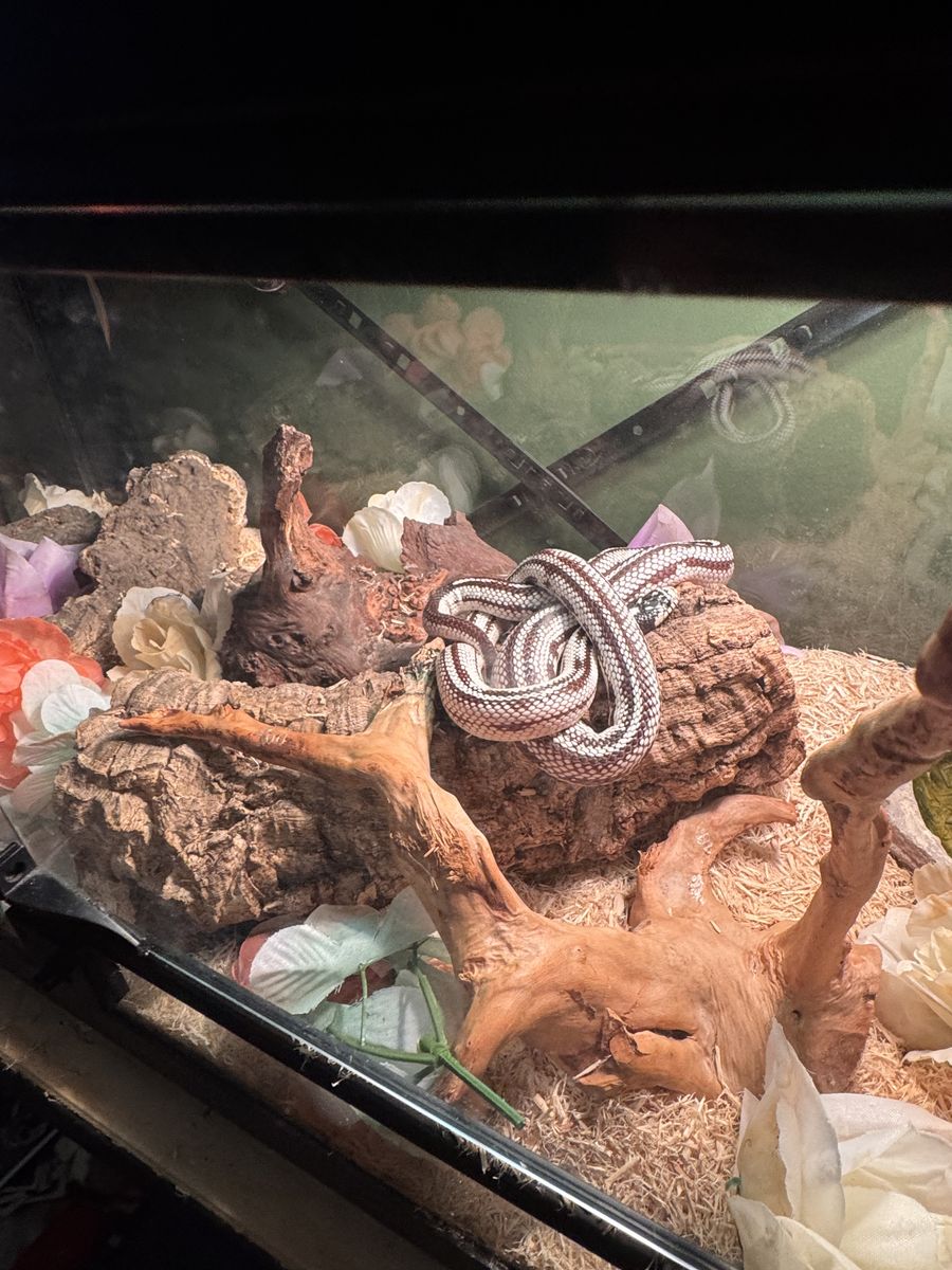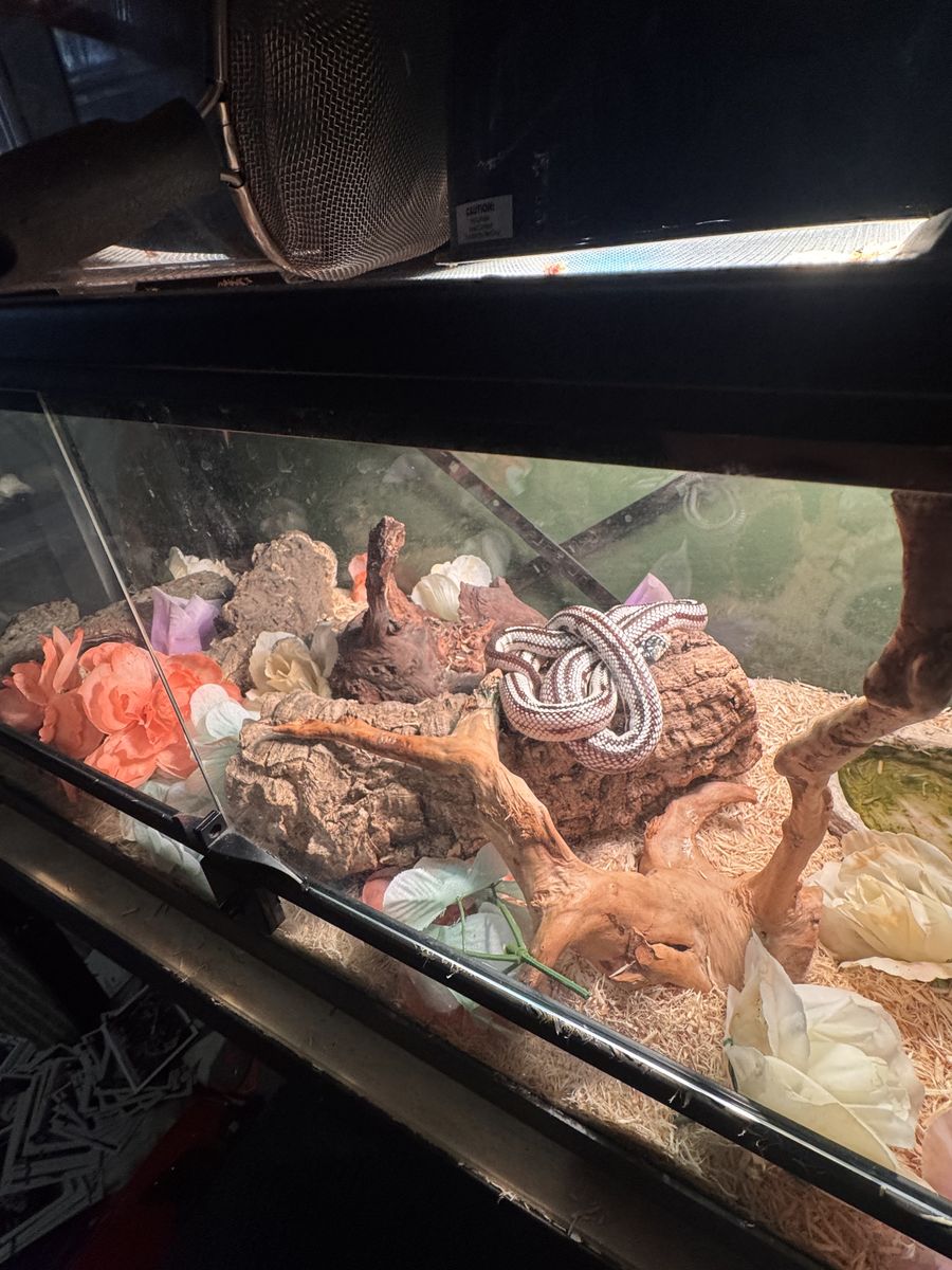 Great and healthy snake, nice new enclosure and good light. Eats frozen hoppers very well, never any issues. My son started high school and just doesn’t have time like he used to, and I end up doing it all and it’s time for someone else to enjoy!