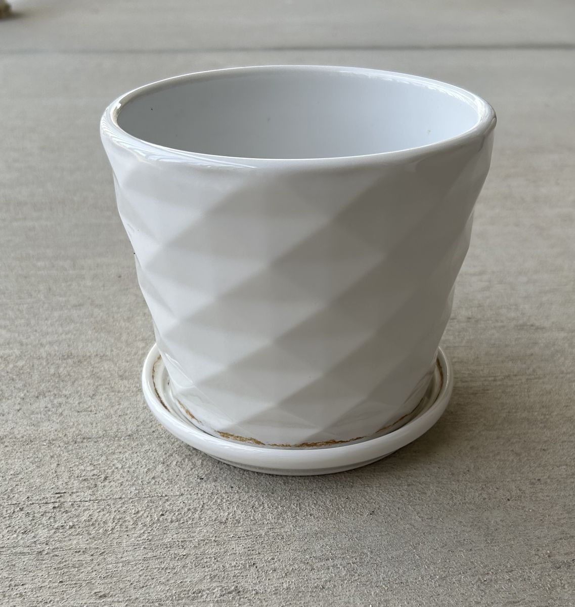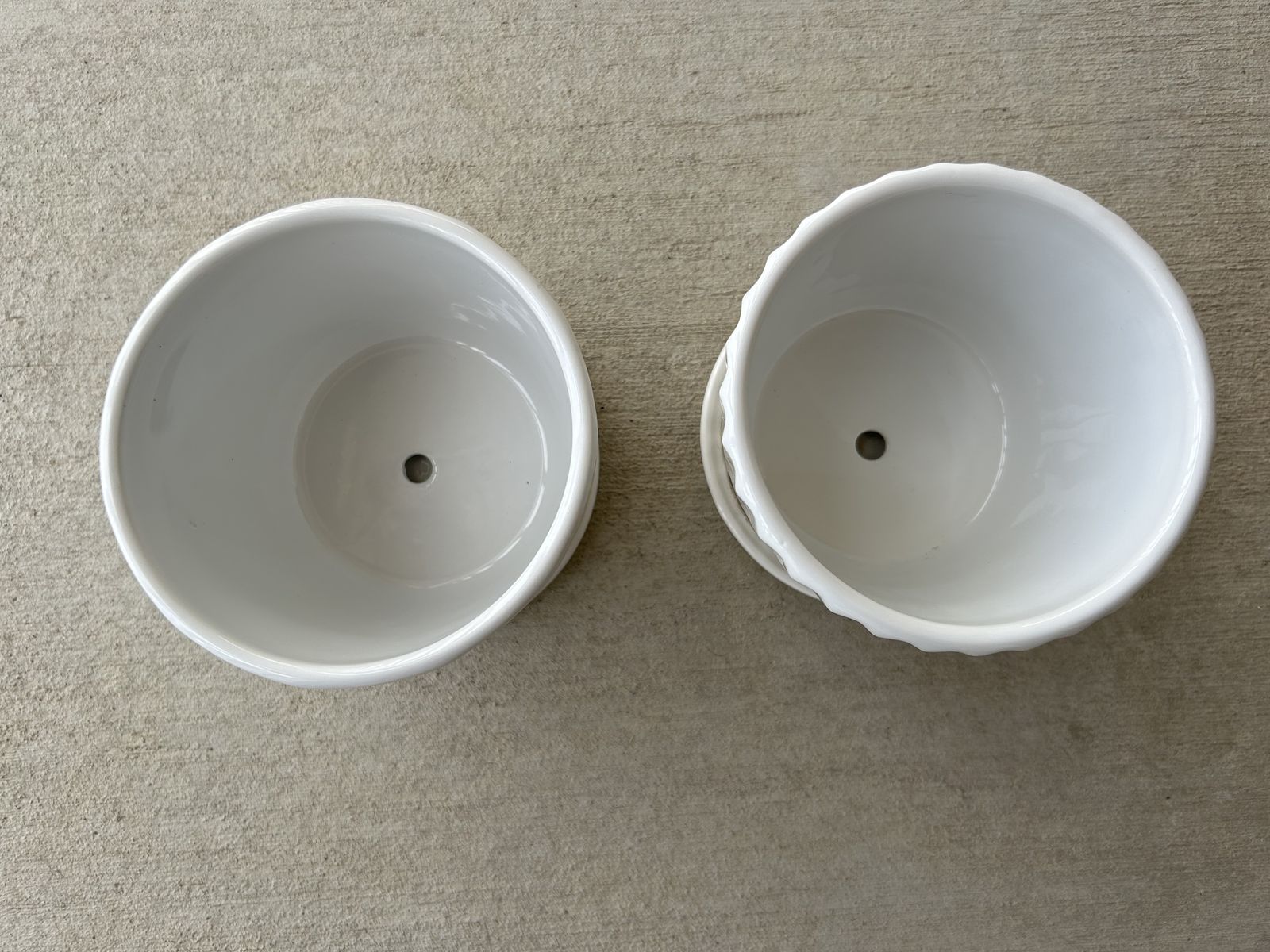 I have 2 - 5.5 Inch White Ceramic Planter Pots with Connected Saucer both for $20 cash. These have hardly been used and are still like new. They have attached saucers and drain holes for drainage. They have been in a smoke/pet free home. Contact me to see.