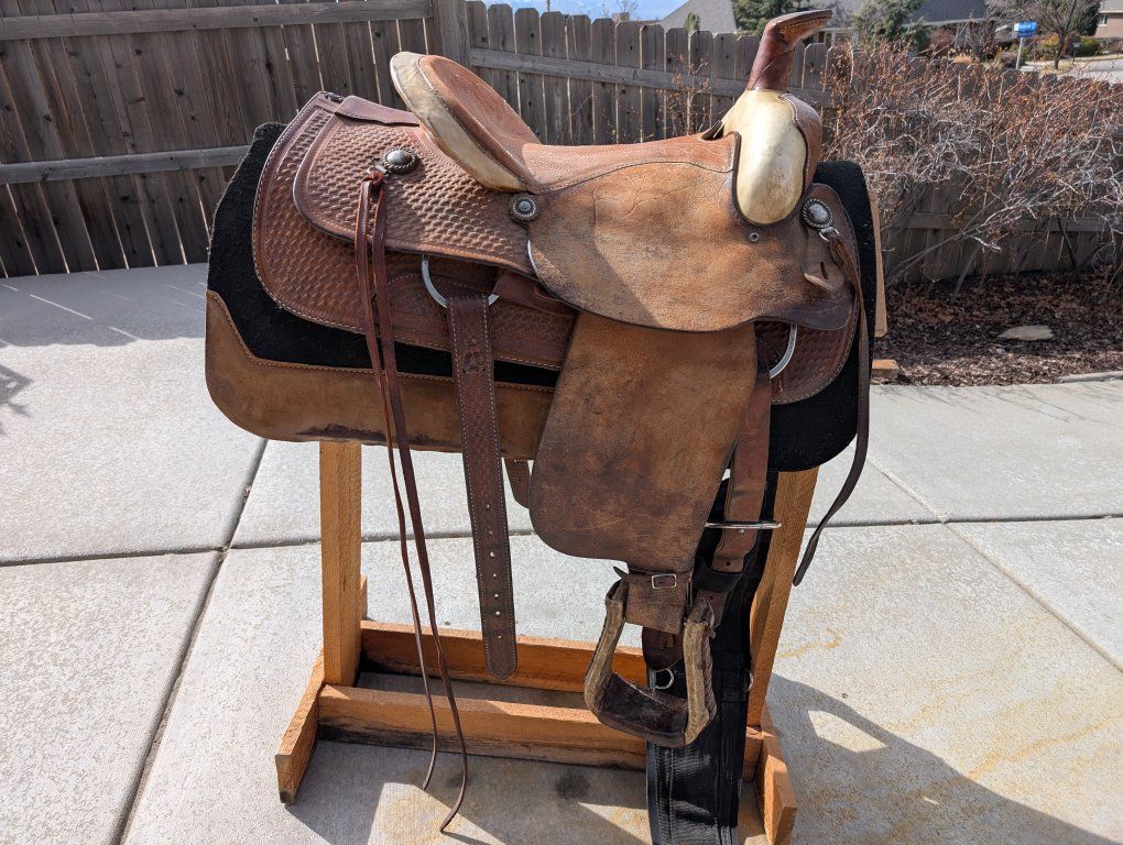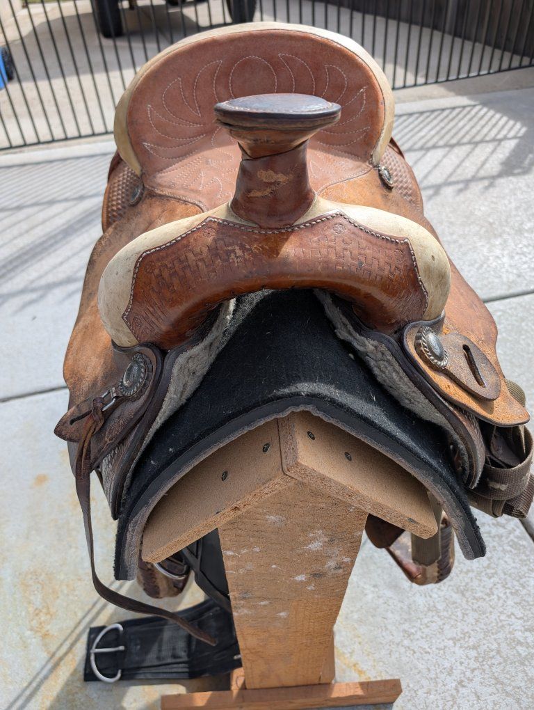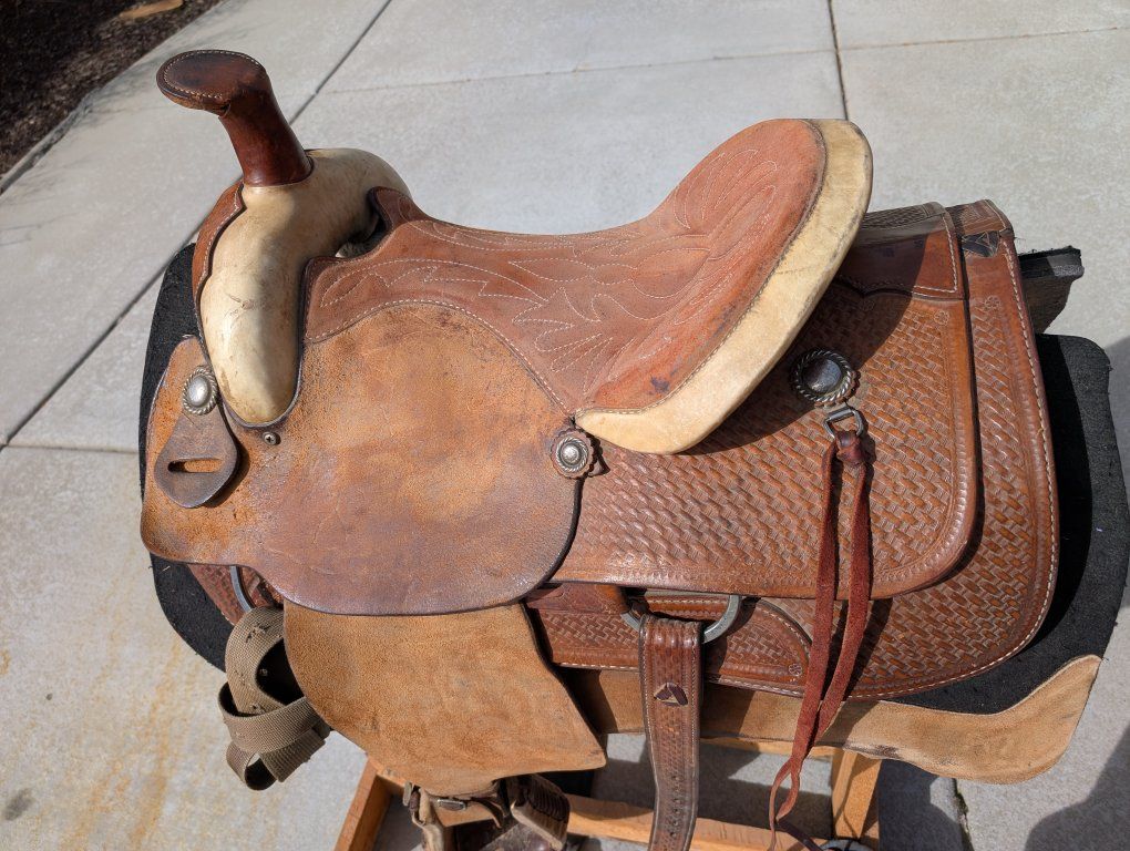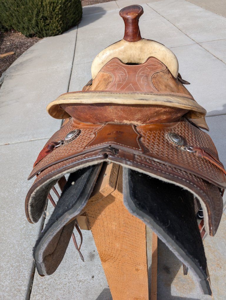 ZelleThis nicely trimmed high quality horse saddle is in very good shape, has a stitched seat, and has all needed accessories. It is perfect for your riding enjoyment! Also see my other saddle listing.