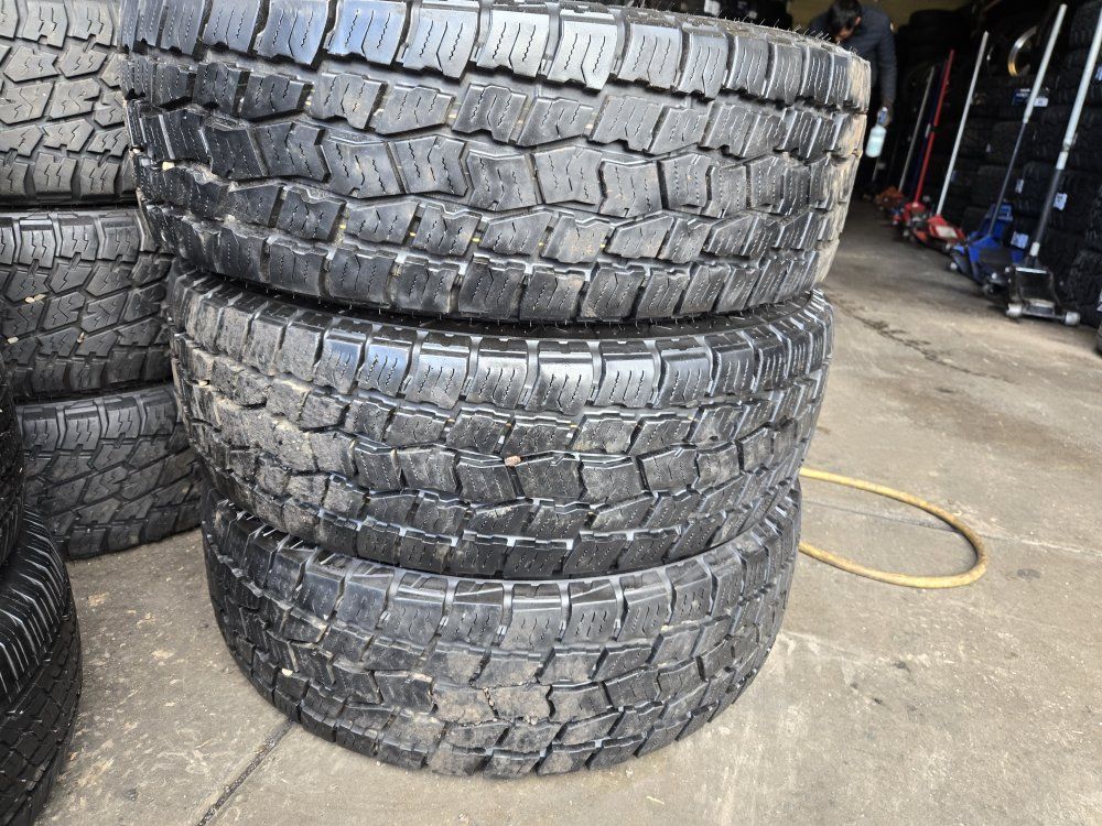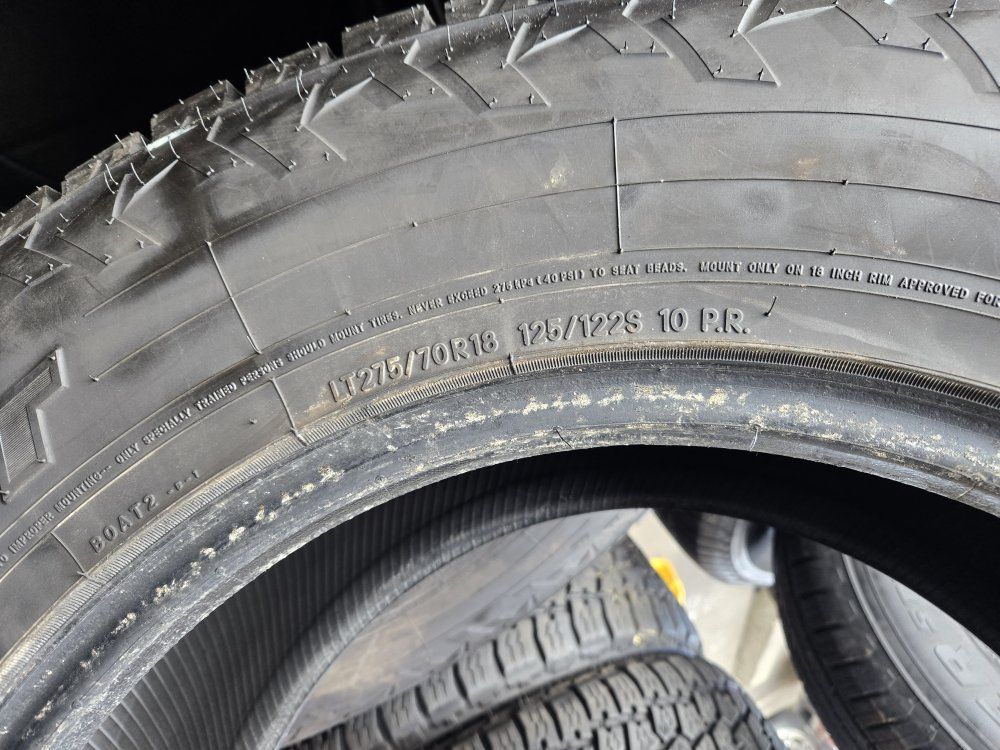 USED SET OF TIRES!! The brand is BIGO A/T Size LT275/70R18 tread. Free mount, balance, and brand new valve stems. LOAD RANGE E 10 PLY DOT 2023 Also check out our GOOGLE reviews to assure you’re in good hands, just search (Oliver Tires) We also offer lots of other sizes new and used. Call or text for availability Espańol; 8016885139 Office: 8016620227 Or come visit us at 3010 west 500 south Salt Lake City Utah