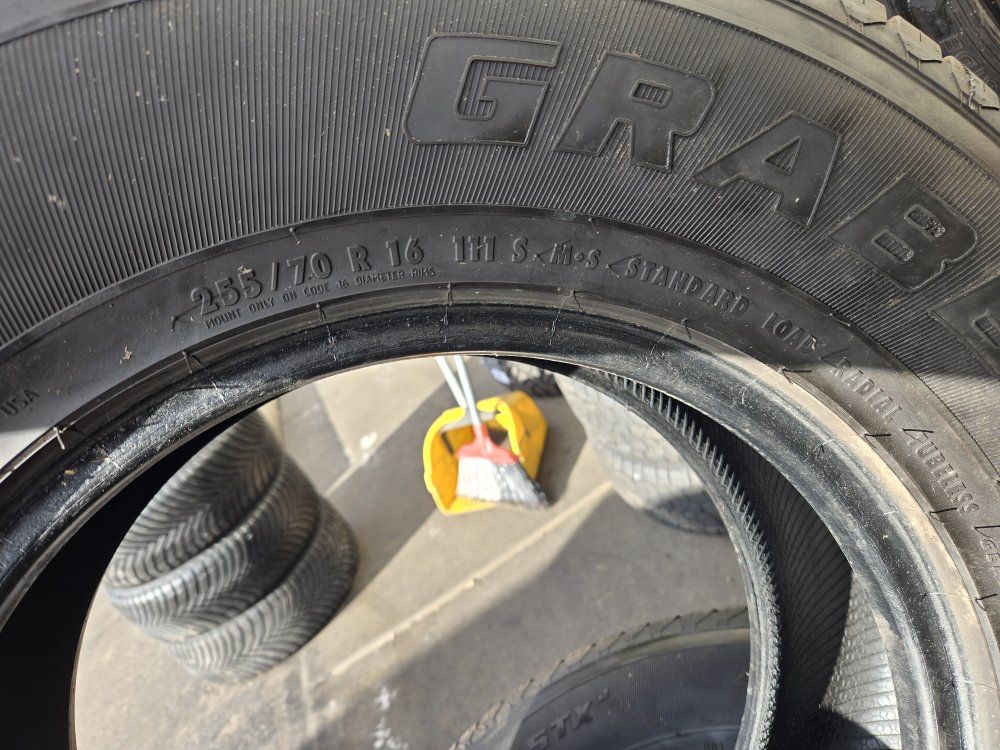 TAKEOFFS!! the brand is GENERAL GRABBER STX Size 255/70R16 85% tread. Free mount, balance, and brand new valve stems. DOT 2019 90 day financing available through Acima, message for details. Also make sure to check out our google reviews just search “Oliver tires” We carry a lot of other tire sizes new and used. As well as used and new wheels. If you have any questions call or text. Espańol; 8016885139 Office: 8016620227. Or visit us at 3010 west 500 south. Salt Lake City Utah. Shop #11