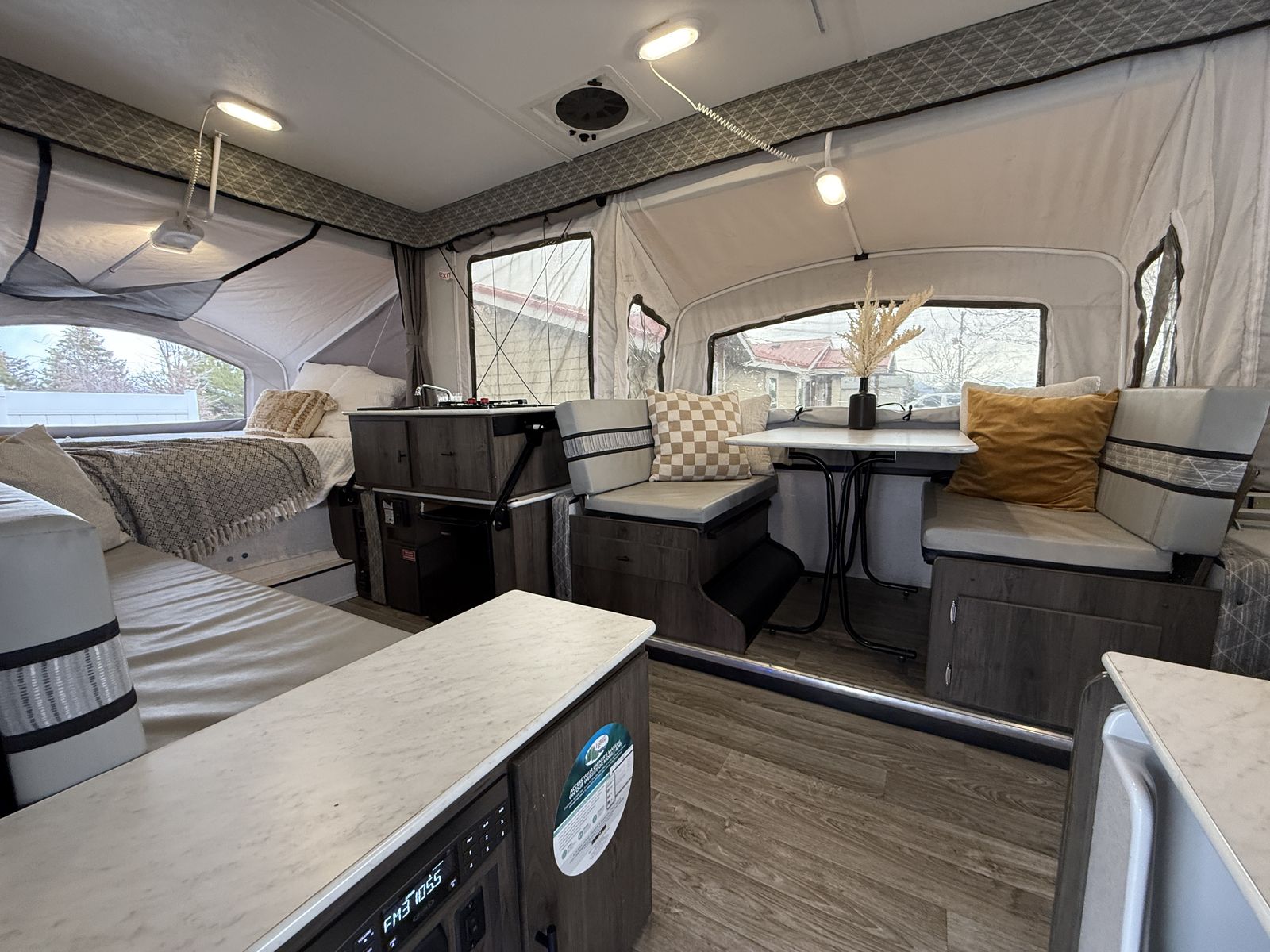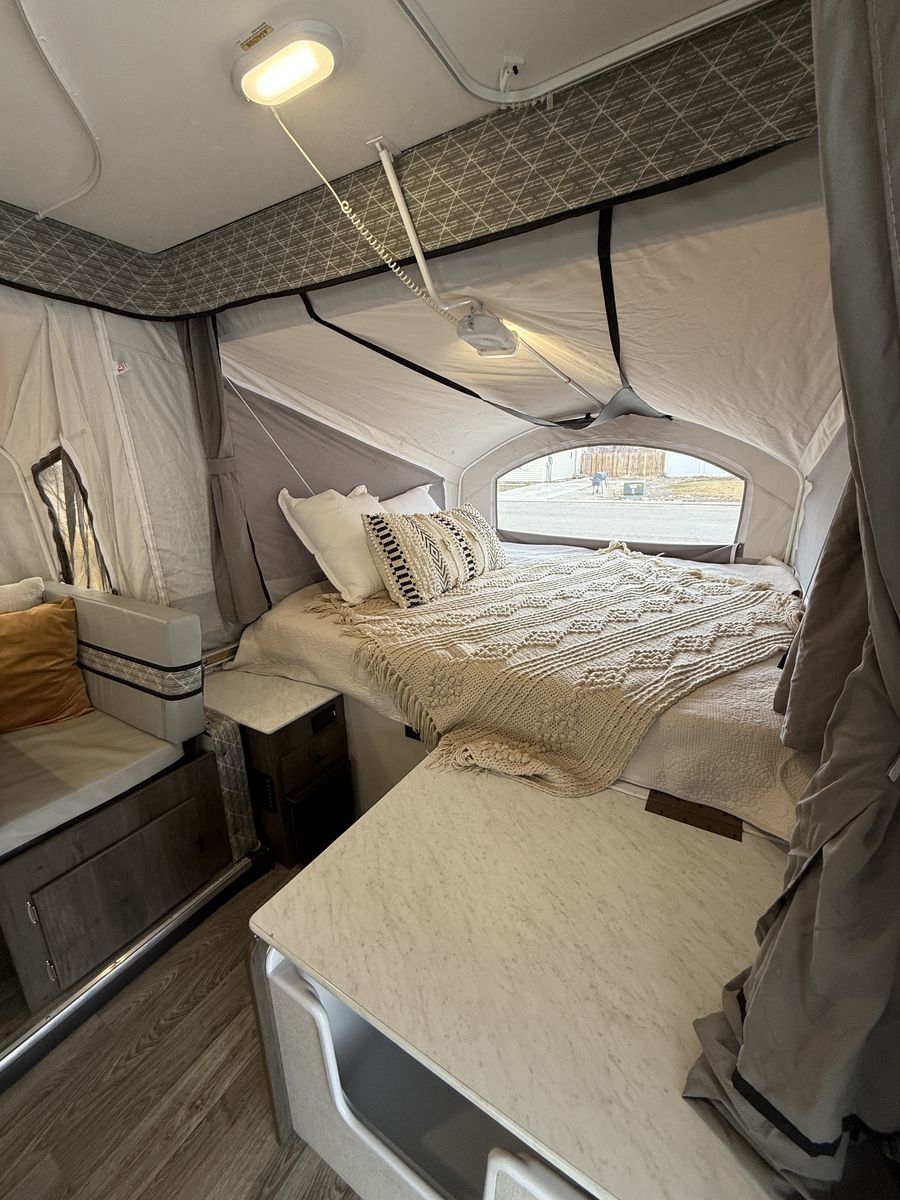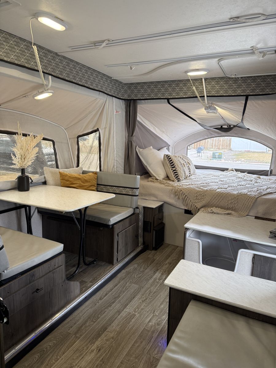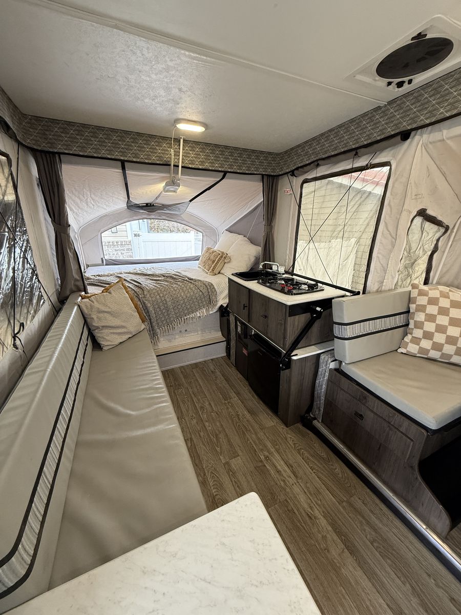 Clean title in hand. Trailer is in super good condition. Torsion axle and off-road tires with great ground clearance. 5’ deep deck with walls that turn into ramps for your atv/motorcycles. Brand new propane tank. King bed on the front with a queen on the back. Couch and dinette both turn into beds. Trailer has a furnace, water heater, external grill with quick connect line, awning, fridge, solar panel connection, water tank on board, toilet and shower stall, and HEATED mattresses (can run on 12v from battery). It also has a dinette slide out to expand the interior space. It is A/C prepped. This is the top of the line from Viking and has had very little use. Motivated to sell as we would like to get a large toy hauler.