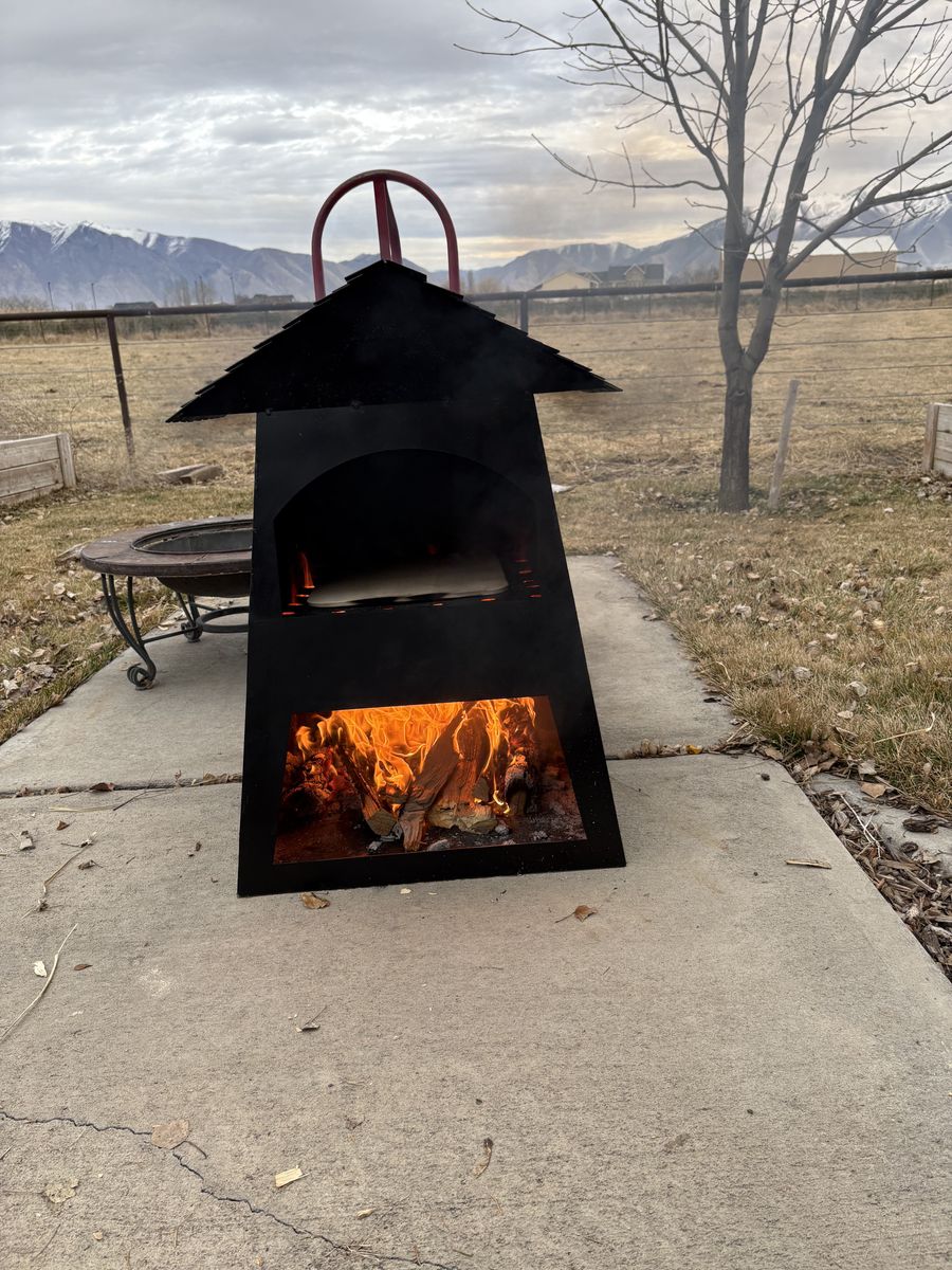 I make this cool pizza oven. It looks cool. It burns wood or briquettes. let me know if you are interested or have any questions