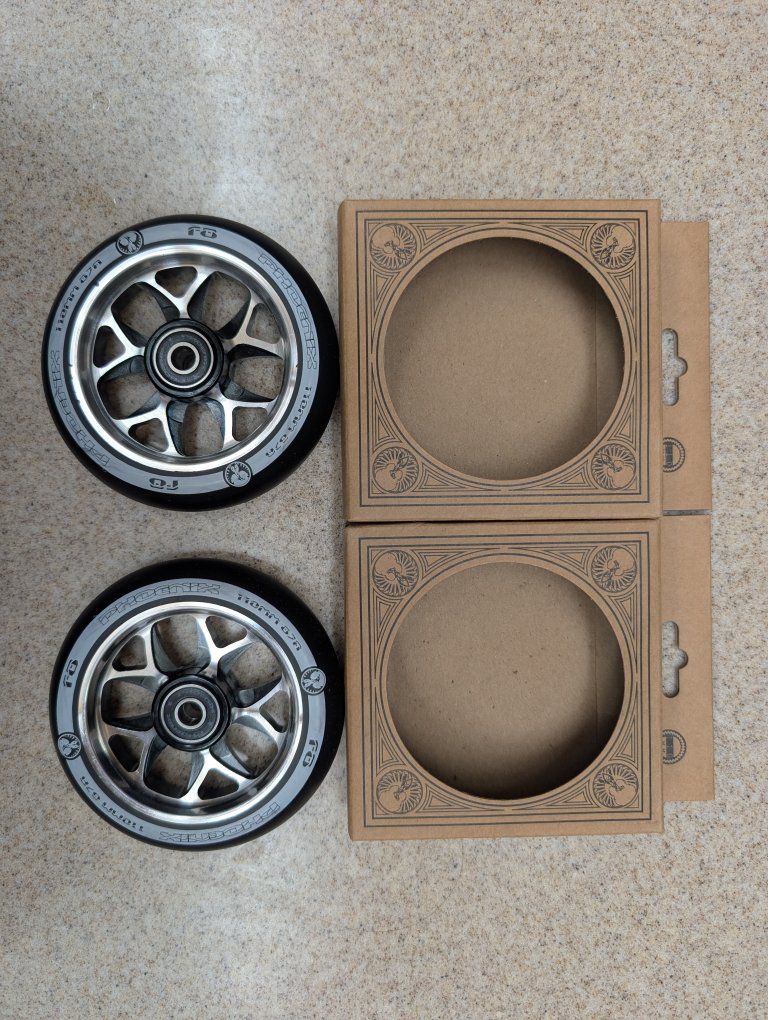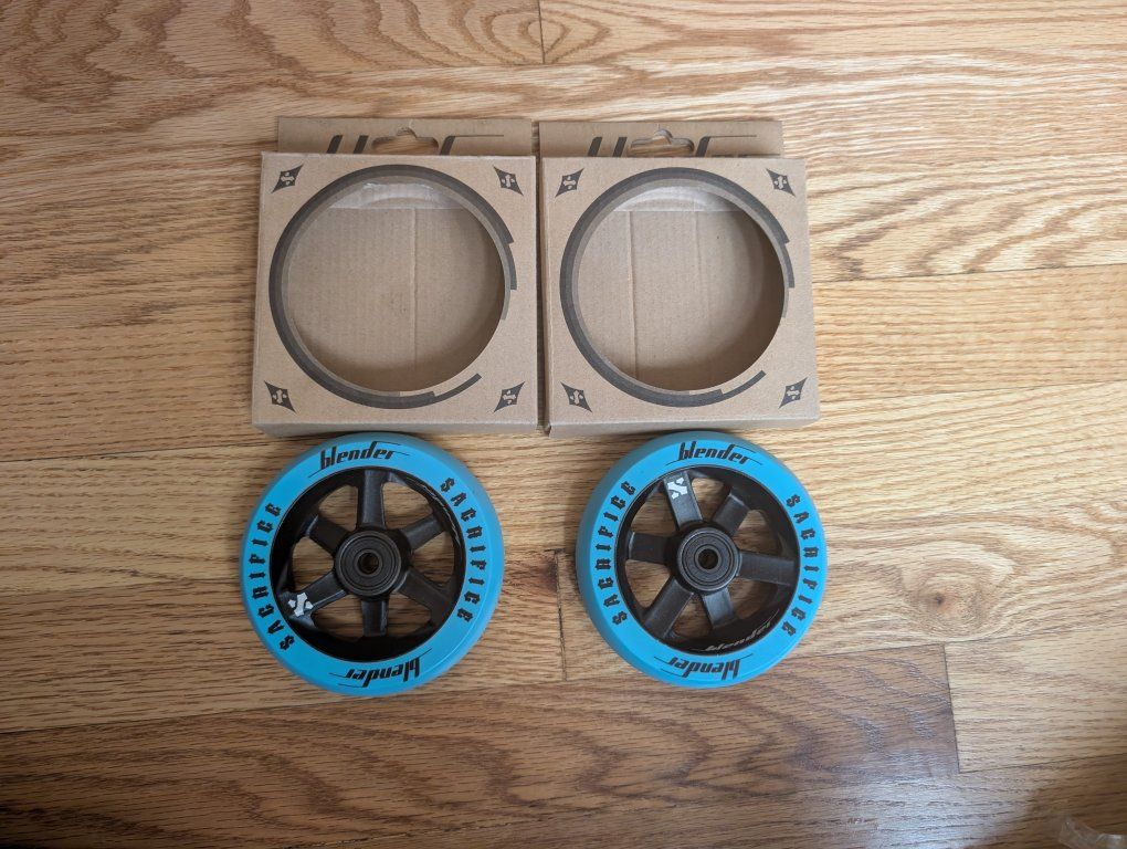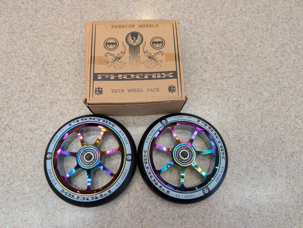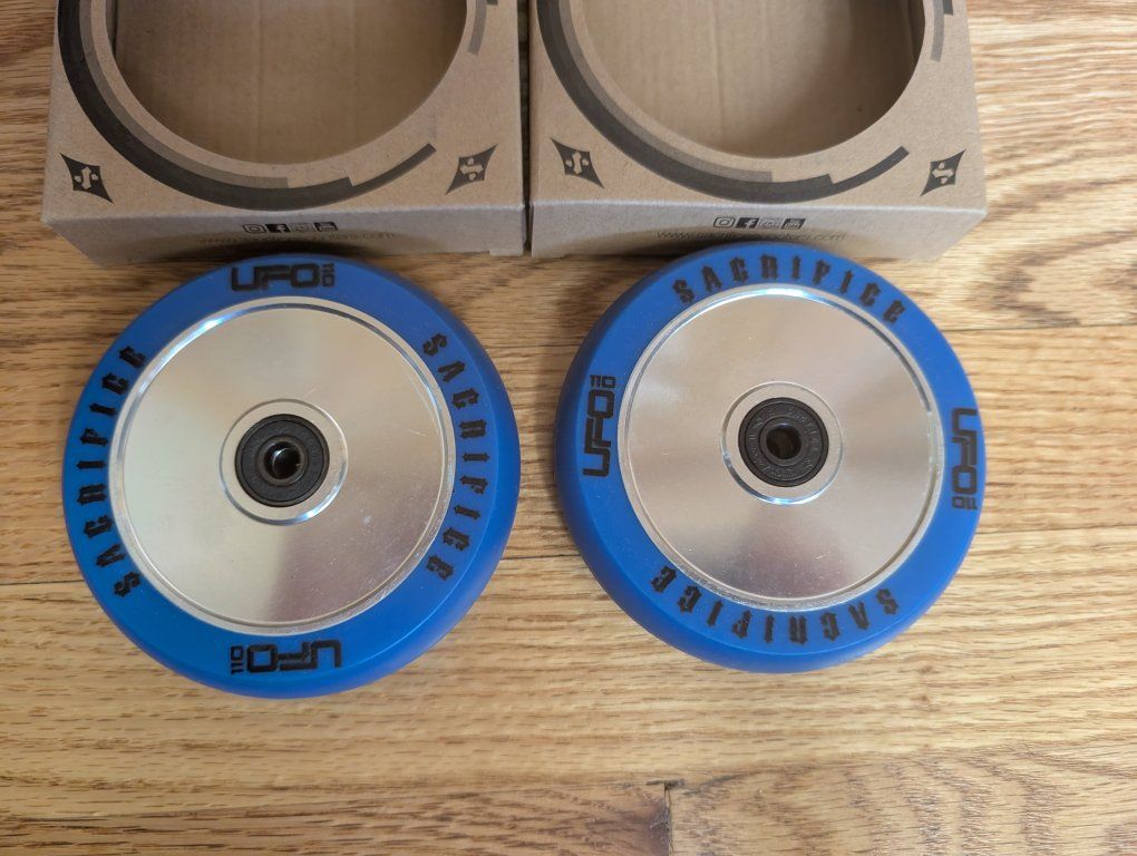 Pick any pair of Pro Scooter wheels for the listed price. All wheels in the photos are 110mm x 24mm. I also have 120mm and 125mm wheels. Check out my other listings. I have a TON of pro scooter parts. Many not listed on KSL, so hit me up to come check them out.