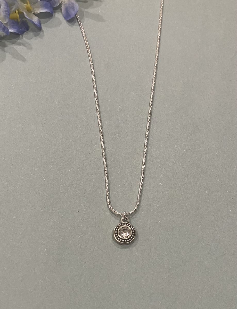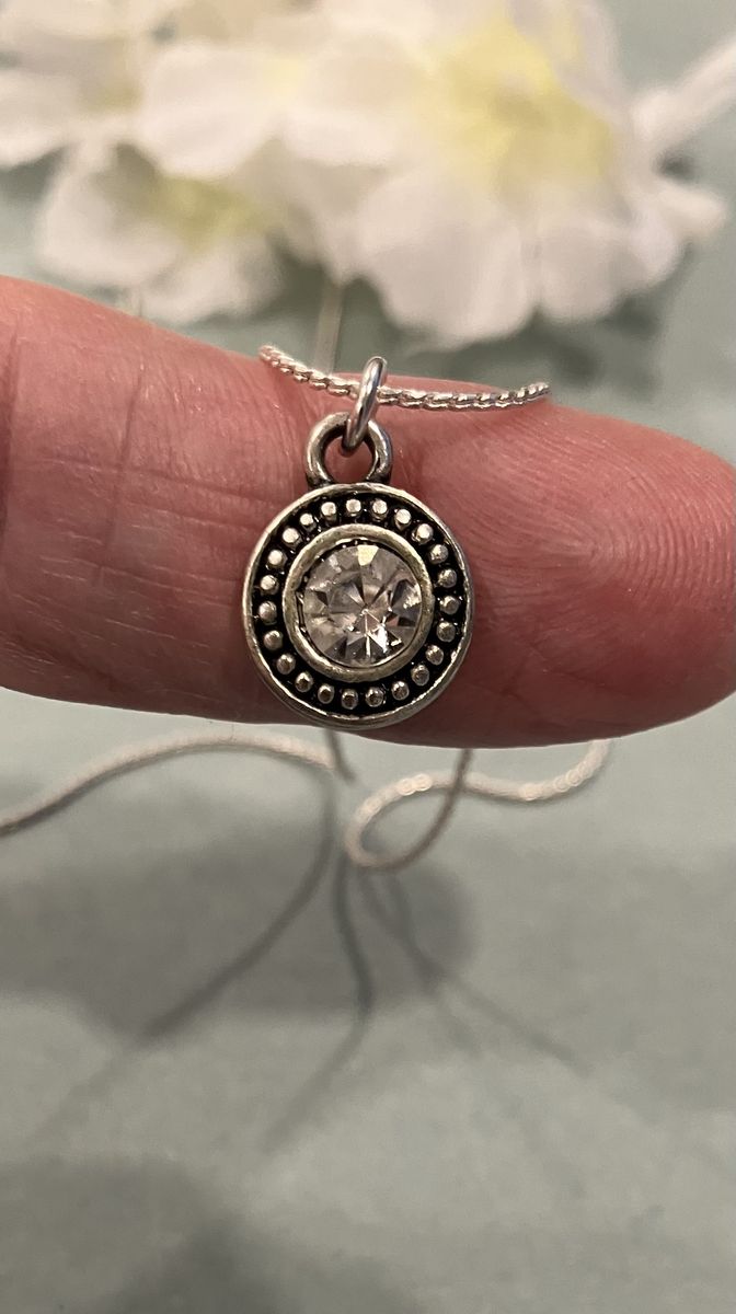 VenmoMinimalist style, tiny circular silver and black colored metal, rhinestone pendant on a 16 inch silver plated chain. Gift box included. Local meetup or can mail with ship fee.