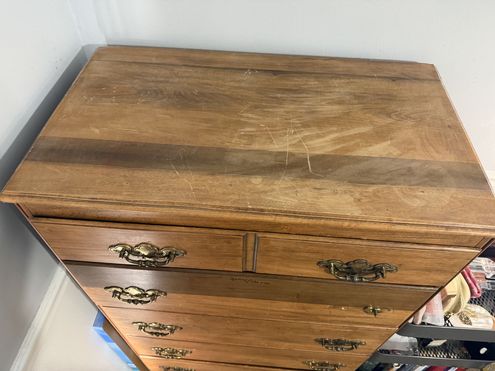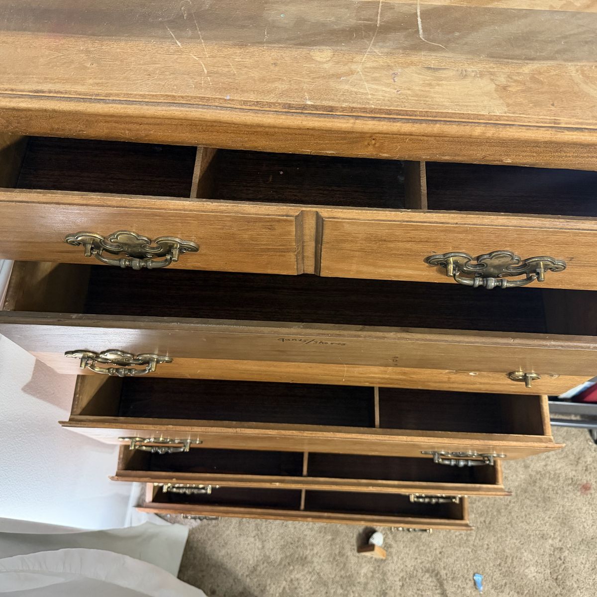 VenmoDark brown dresser with 5 drawers with rusted gold handles