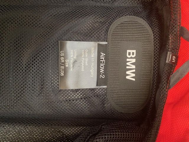 Venmo$95 OBO. This is a new BMW AirFlow 2 riding jacket. It is armored on the back, shoulders and elbows. It is size 6R/EU36. It is red and silver. It has the air flow design to keep you cool on the drive. Let me know if you have any further questions. Text preferred. Also, take a look at the other items I have for sale