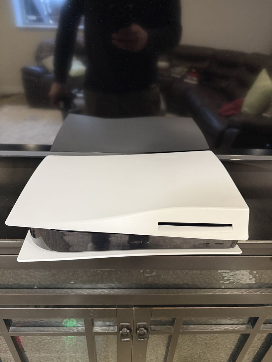 ApplePayClean Sony PlayStation 5 Disc Version console. Comes with a cool gray DualSense controller and power cable. Ready for some gaming!