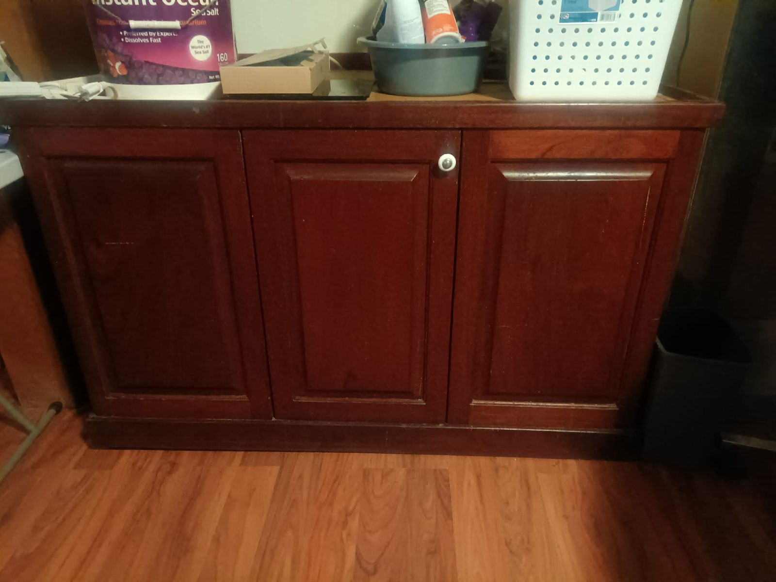 Asking 100 but I am open to your best offer. 48 inches long. 27 inches deep. Minor repair work with the top left molding of the stand needs to be reattached.
