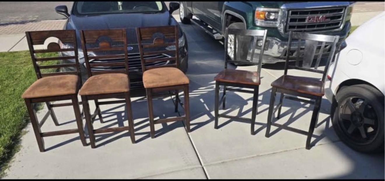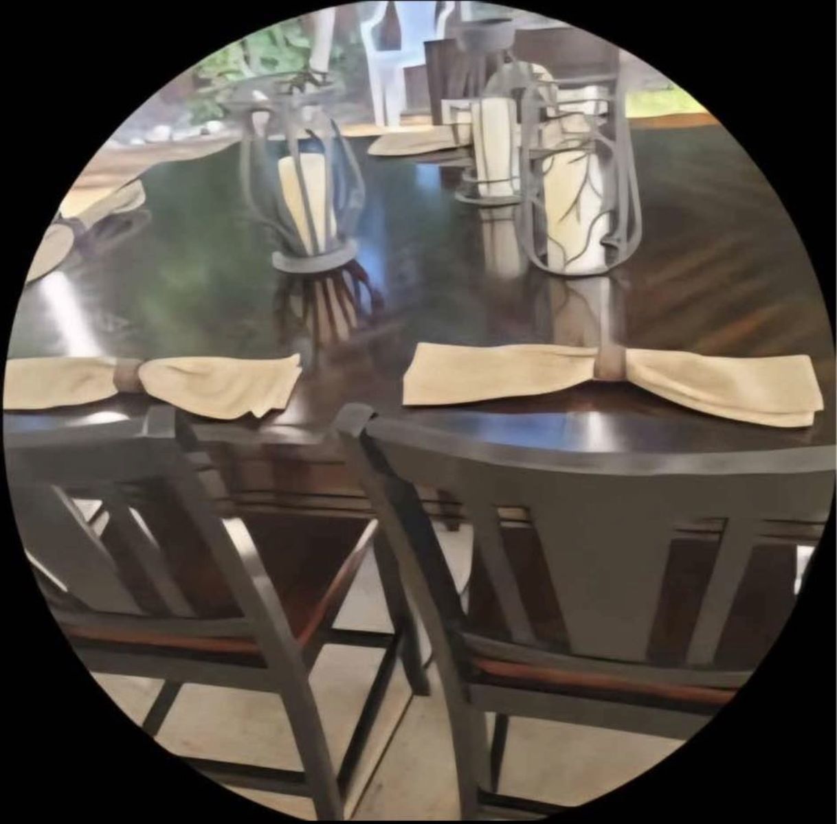 VenmoBeautifully colored table with 5 chairs. 3 ft tall, 4 ft wide, leaf extention 1.5 ft. Have just been storing it and I have no need for 2 tables. Can deliver for additional fee.