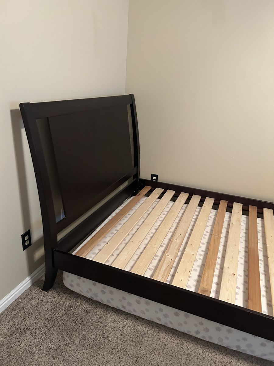 Queen Size Platform Bed Frame with Wooden Headboard and Footboard, Heavy Duty 12 Wood Slats Support, No Box Spring Needed, Under-Bed Storage, Noise Free, Easy Assembly, does not include the mattress, selling for 100 OBO