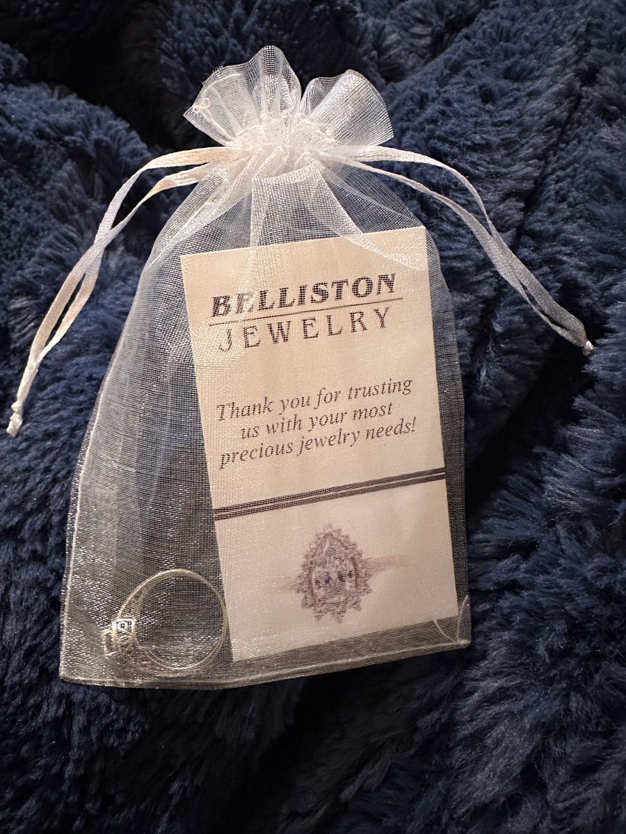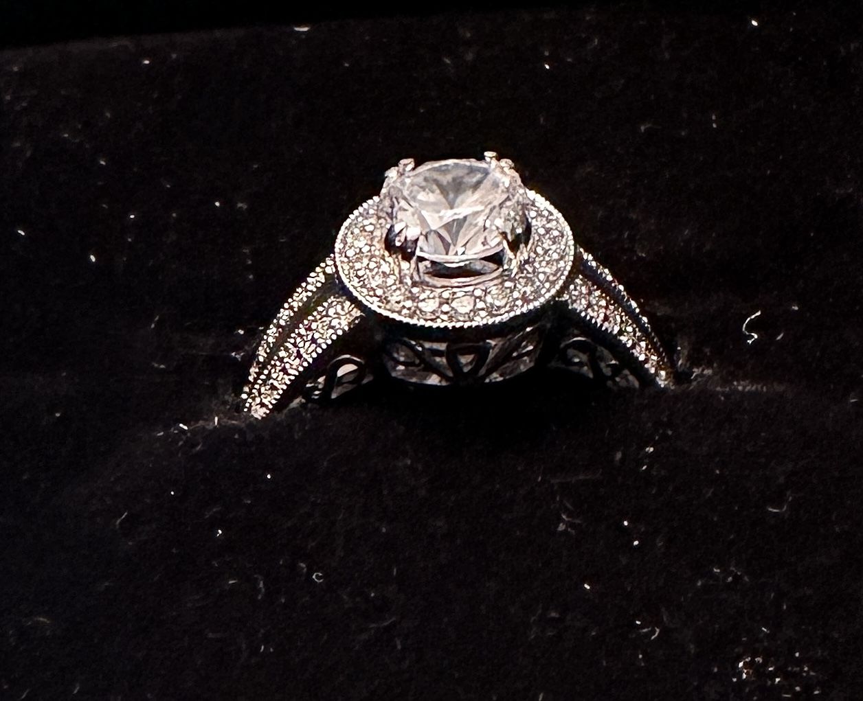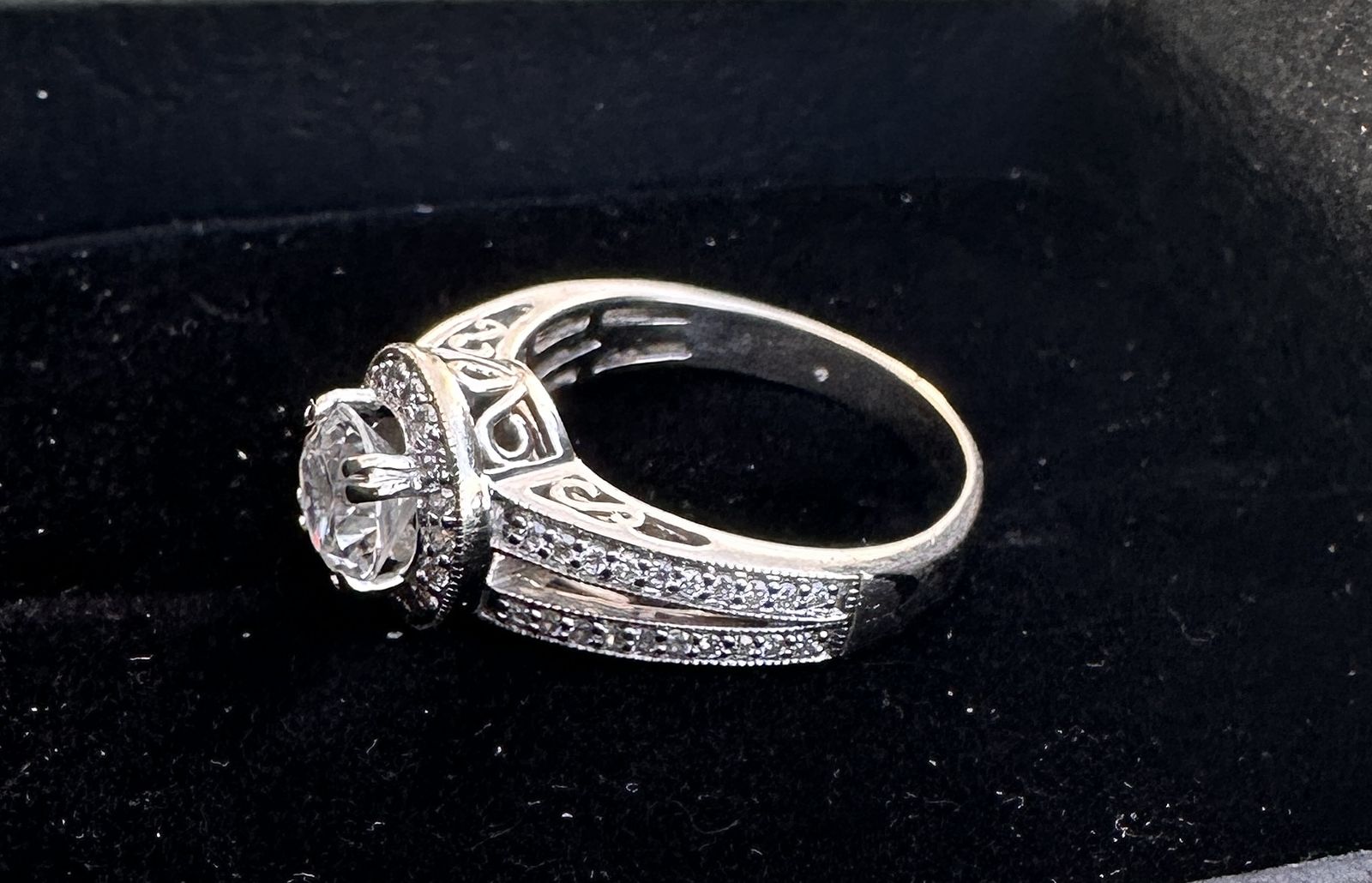 Venmowhite 18 carat engagement ring with 0nd nds, size 6 1/2, stone set in the ring is a 6.45 MM round hybrid.