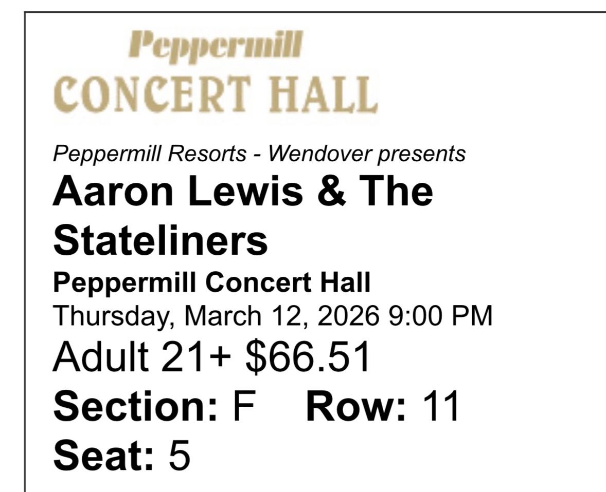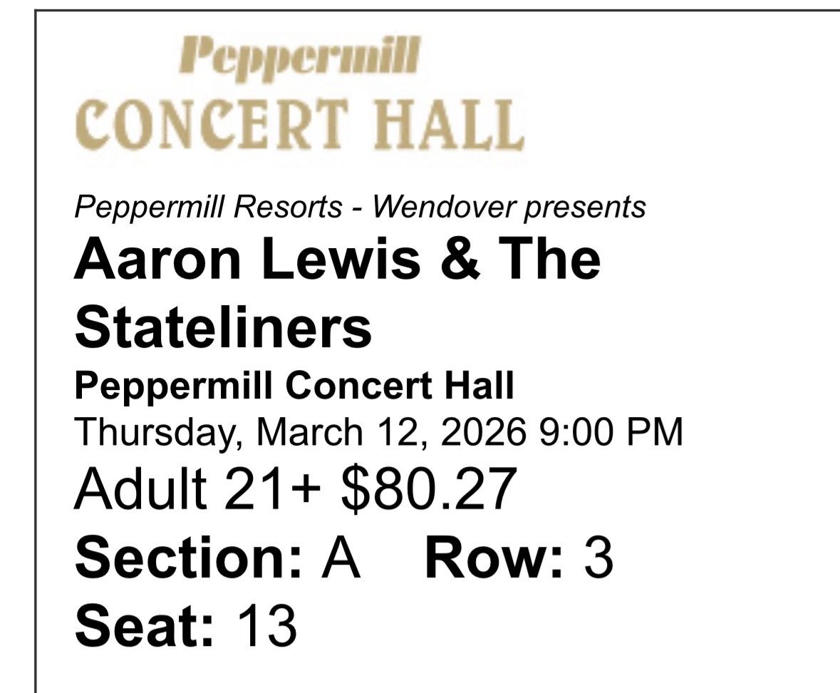 VenmoTwo single tickets for Aaron Lewis Thursday night concert March 12. $50 each ticket.