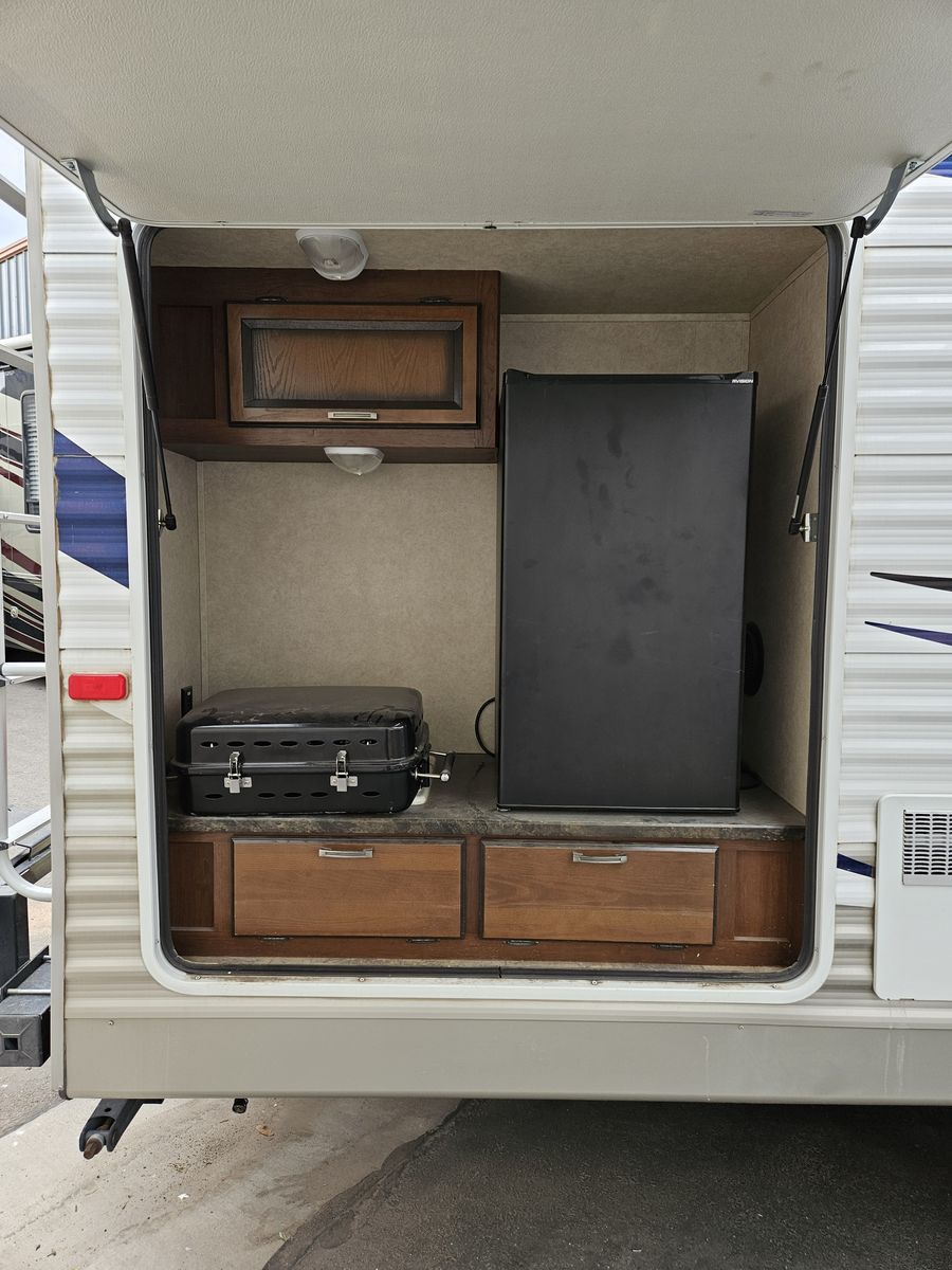 Everything Works! Outside Kitchen! Clean Title! Electric Slide Out for Space! Half Ton Towable! Room to Sleep 6 People!
