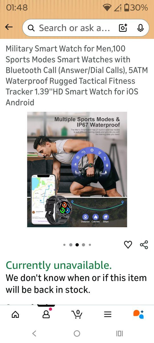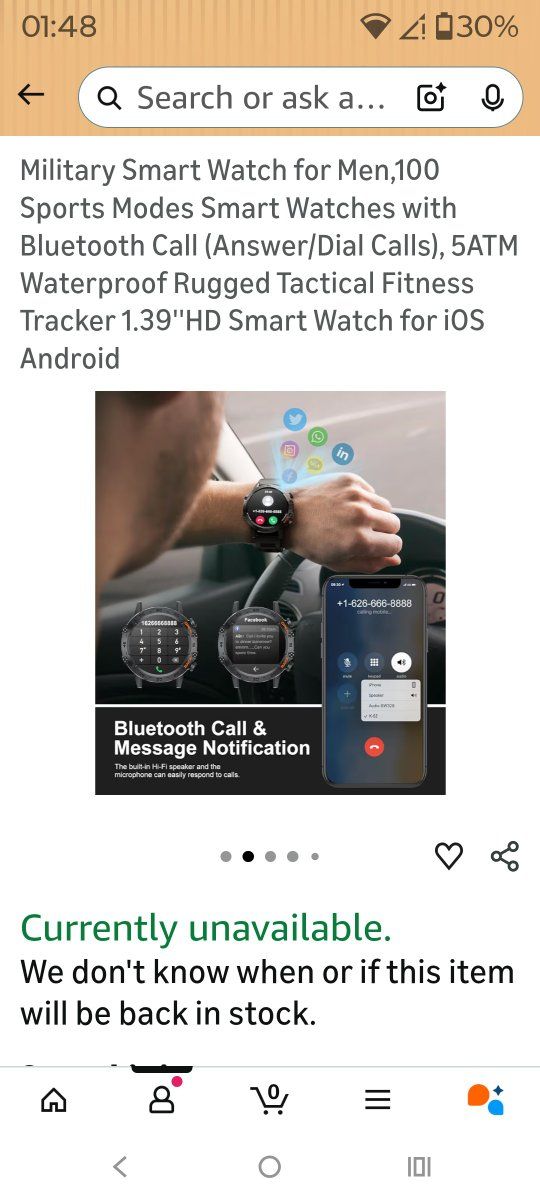 military smart watch Android 1.39 screen. waterproof Bluetooth. purchased 2024. cash please message for questions