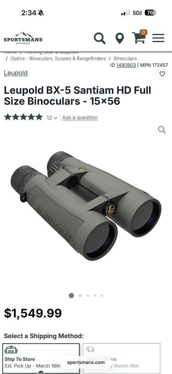 VenmoLooking to sell or trade my leupold bx-5 santiams. The binos are like new, I've only taken them out on a few shed hunting trips and they are amazing. There's no scratches at all, always kept in a protective case and covers left on when not in use. I'd like to trade them for some vortex razor 18x56 if possible. Or I'd let them go for 1,000 obo. They retail for around 1,500, I will be keeping the tripod adapter. But I also have a ollin digiscope adapter for them. You'd just need to buy the phone case. I do also travel back and forth from Lehi to Ogden, so I can meet anywhere in between.