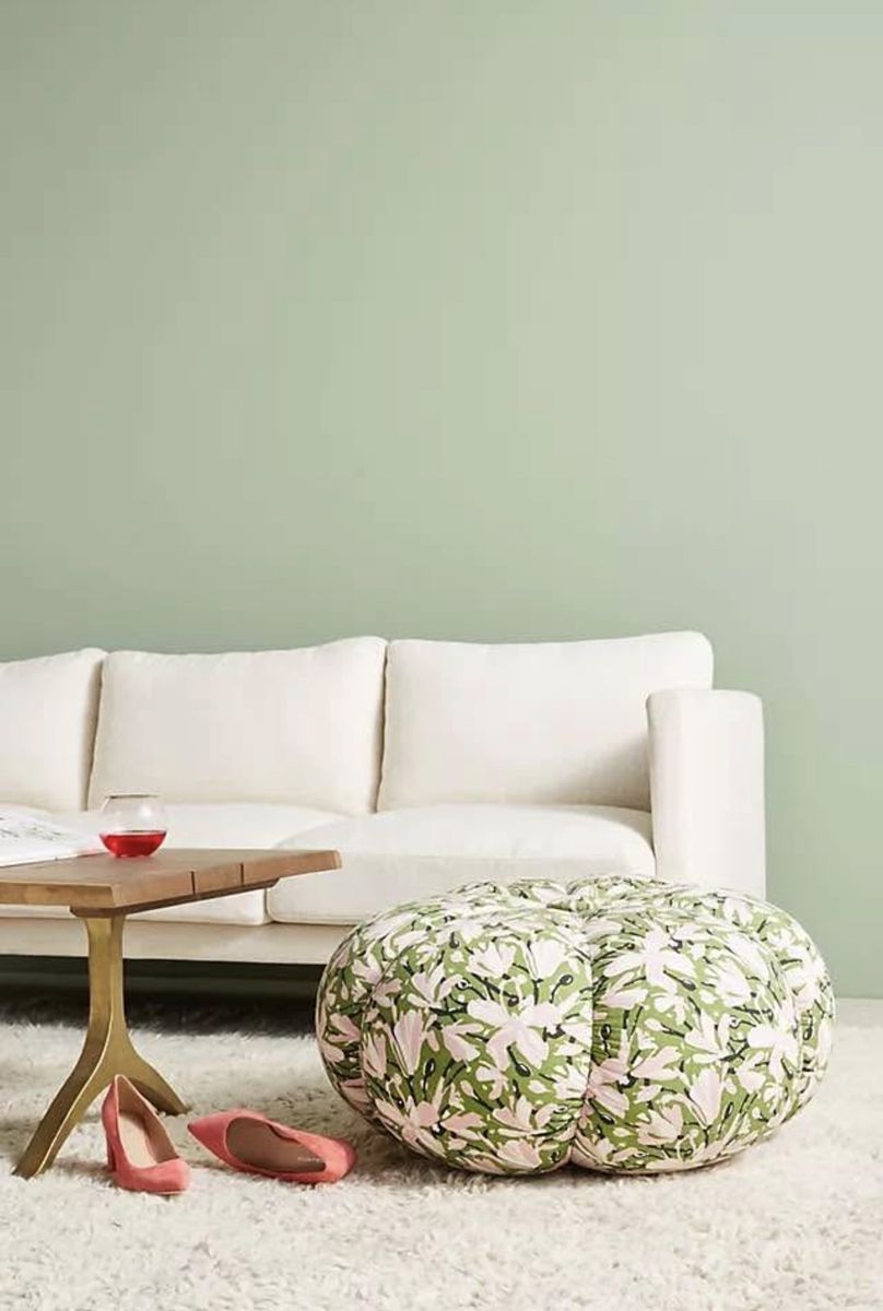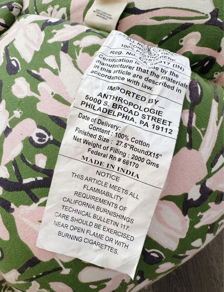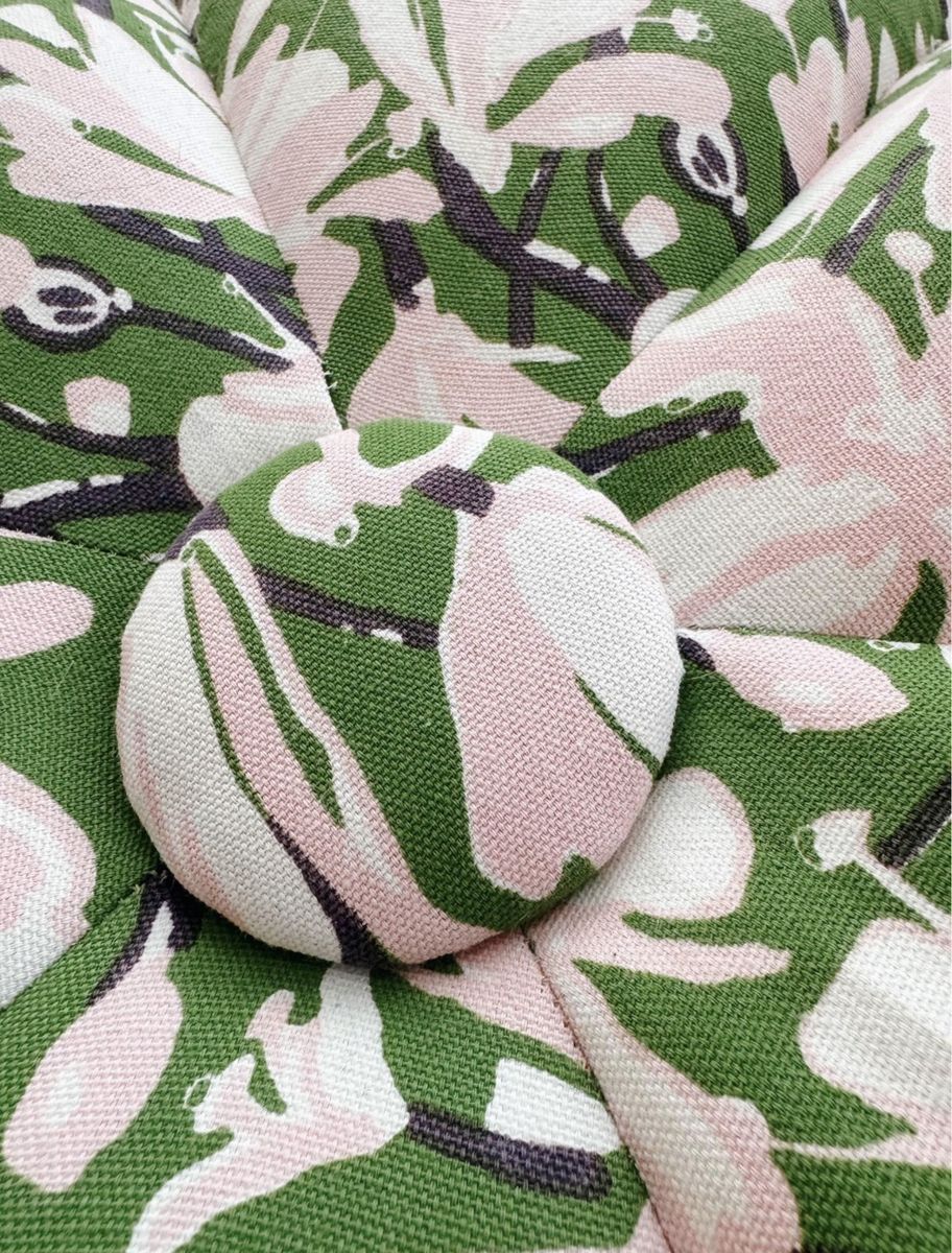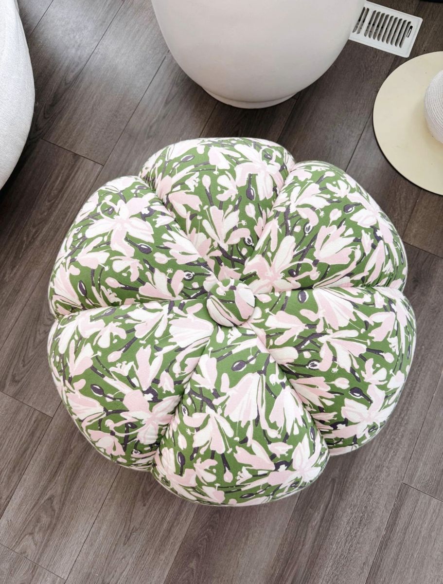 VenmoDiscontinued Modern Green & Pink Floral-Printed Pouf Ottoman Footrest Extra Seat by WHIT in Collaboration w/Anthropologie