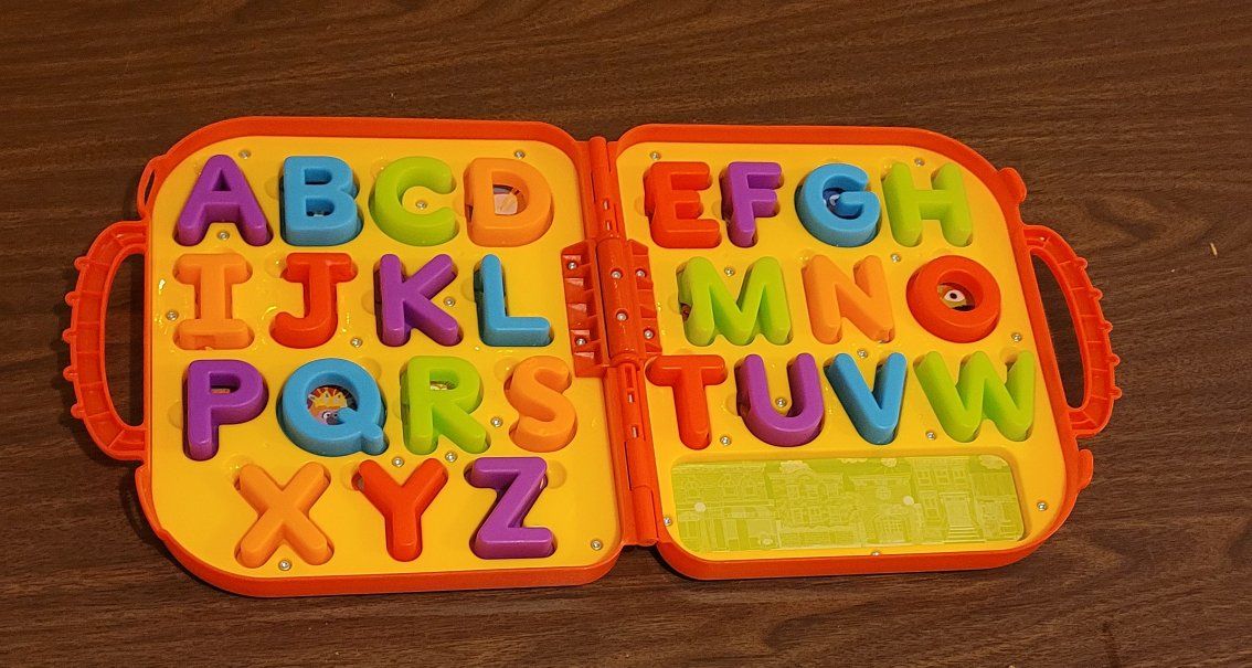VenmoA portable carrying case featuring Sesame Street characters and snap in alphabet letters. Underneath each letter is an image of an object starting with that letter. It features a small spelling area inside the case for mixing letters. Great condition. No missing pieces.