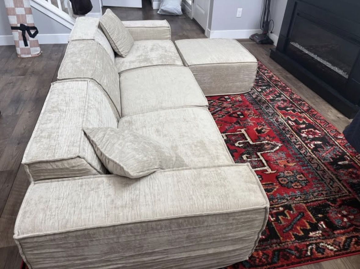 ApplePayBRAND NEW! Rove Concepts M1 Sofa Three Seater + Ottoman Just assembled! Has been stored in a smoke and pet free home Color is Silicon Sand Retails for $1047 (on sale)