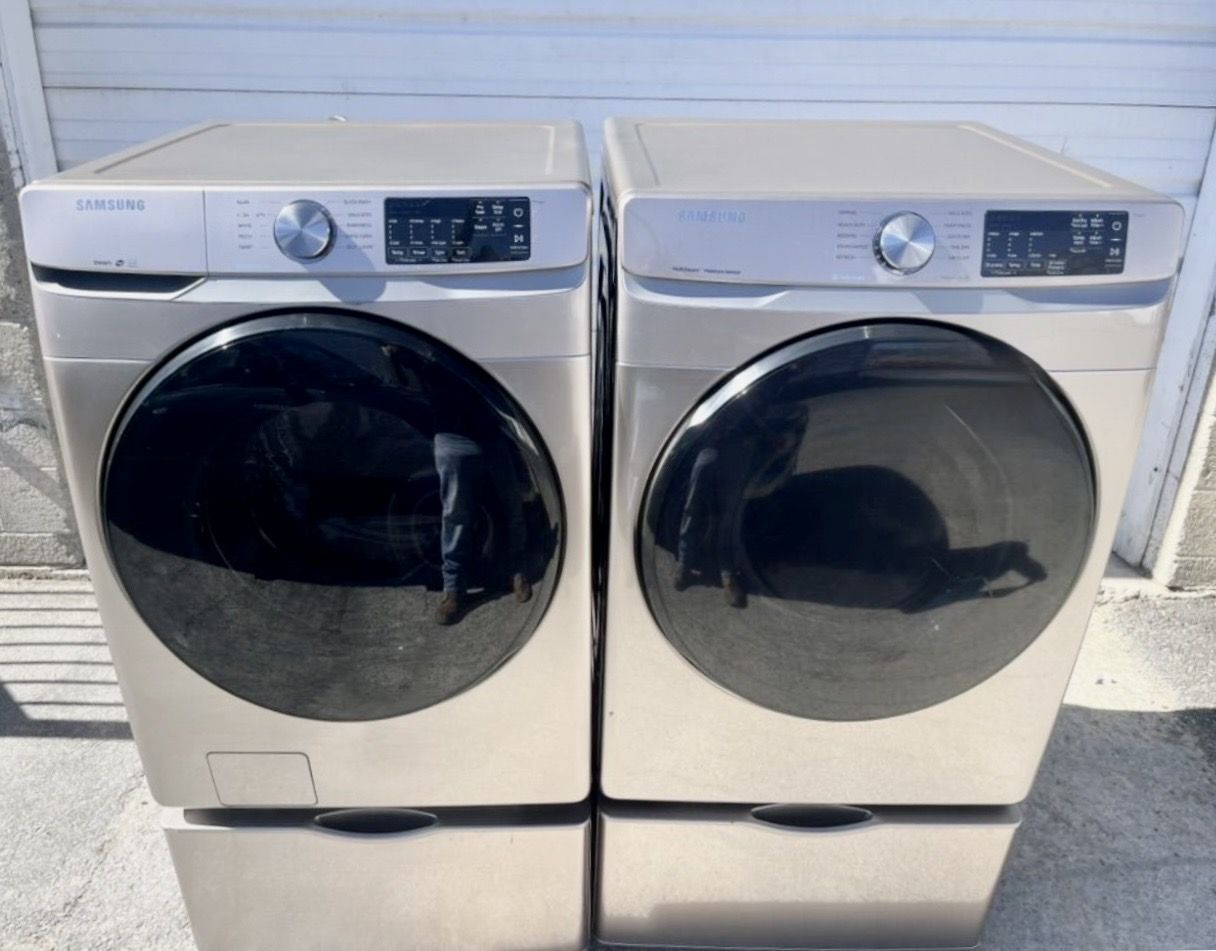 I have for sale a great working champagne color Samsung steam Washer& dryer they both work great and they're both heavy duty large capacity machines they can be stacked if pedestals are taken off or side by side call or txt with any questions free delivery in sic