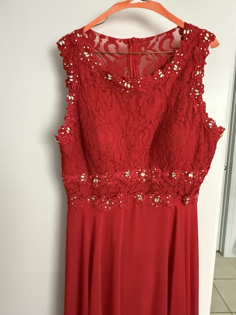 VenmoThis gorgeous red prom dress is a show stopper. The beautiful lace bodice is stunning. The bottom is flowy. It has been dry cleaned and ready for use.