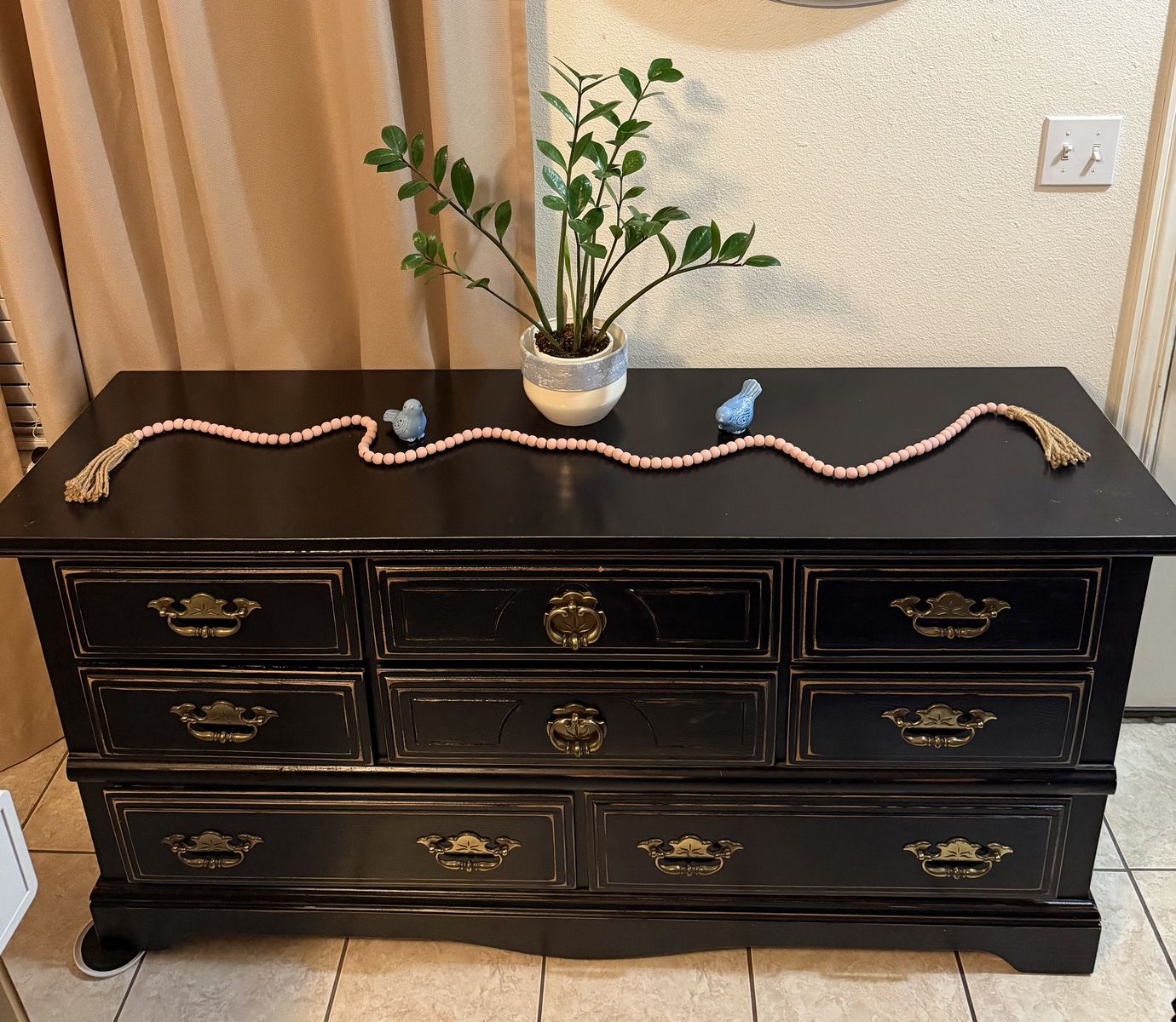 Seven-Drawer Wood Dresser, Painted Black