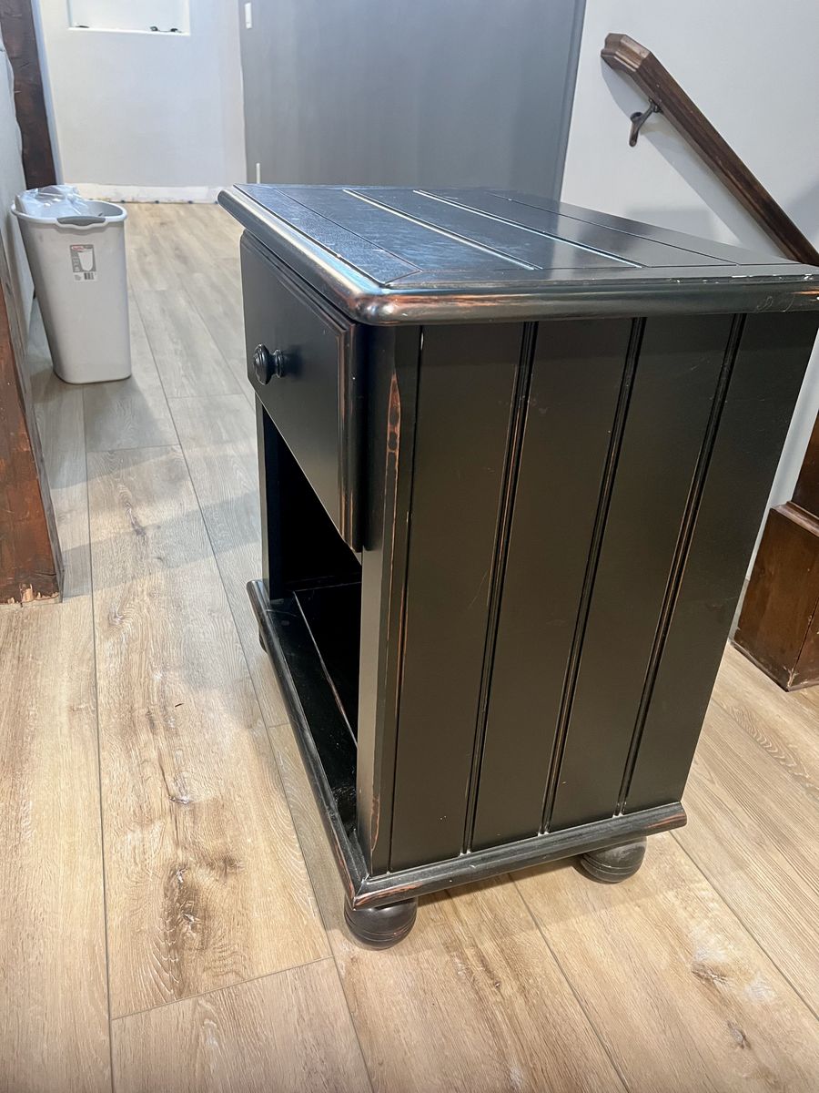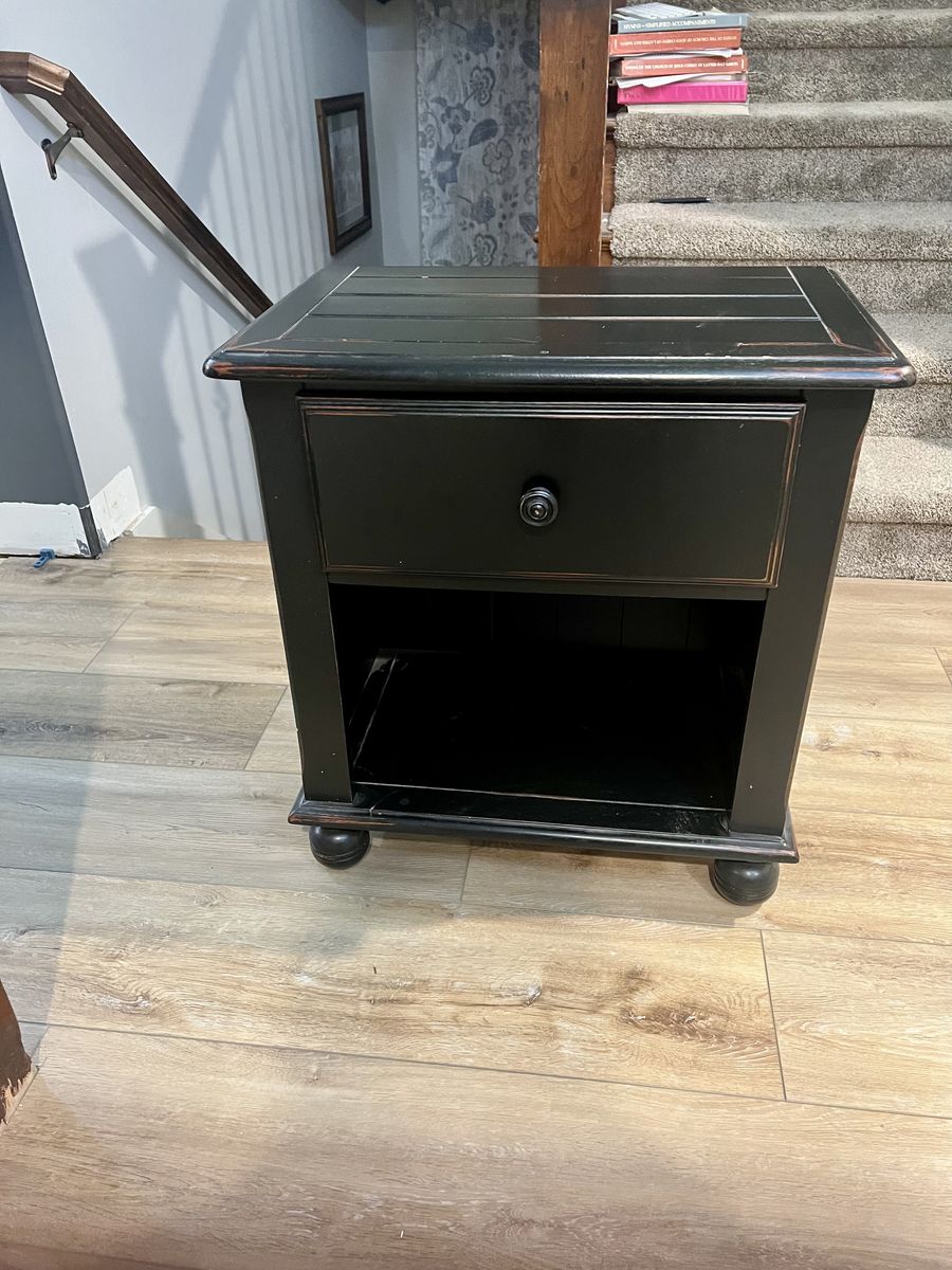 VenmoBlack nightstand in good condition. 28 inches high H 25 in W 16 in D