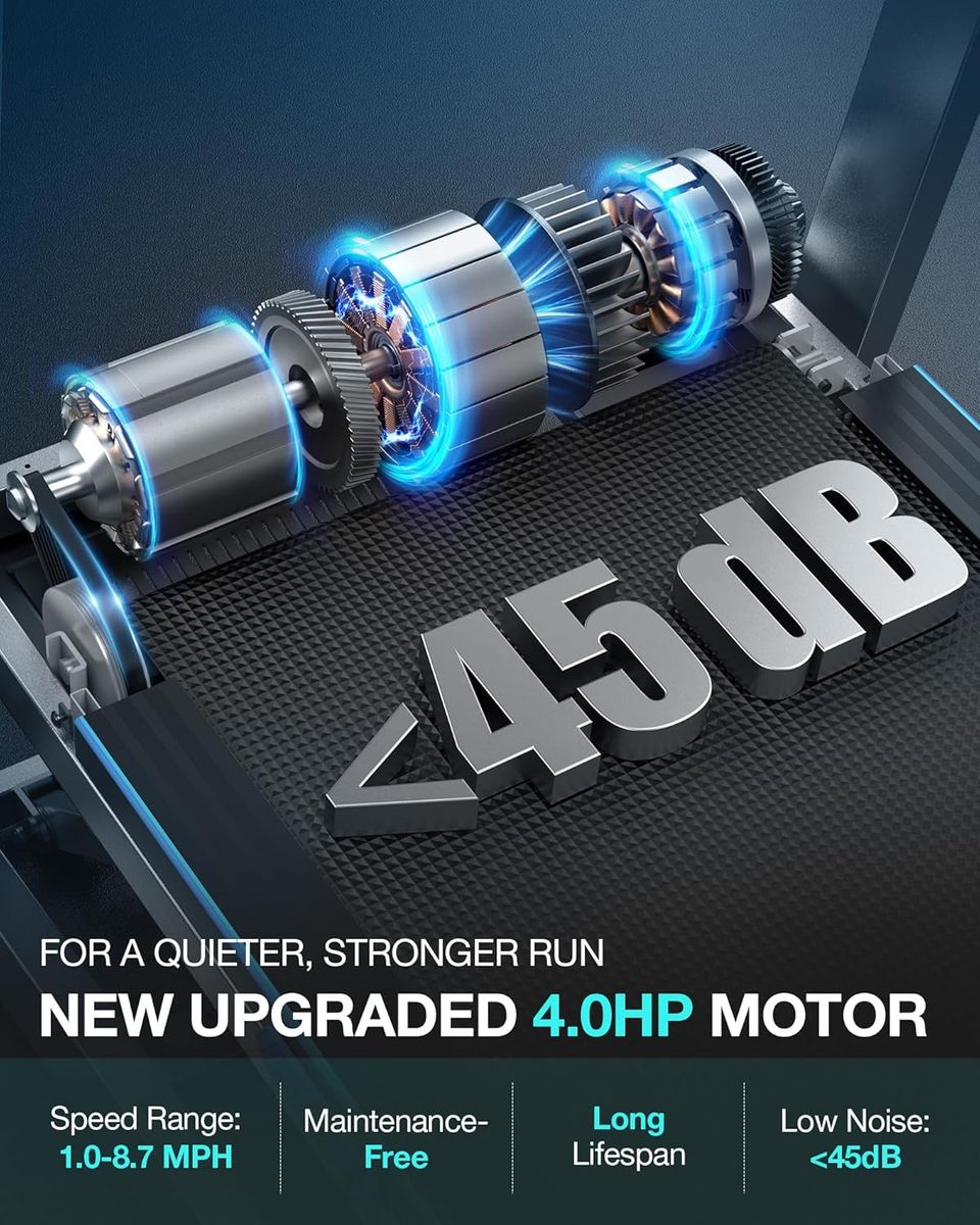 4.0HP Powerful Motor – 400 lbs Capacity SupportEngineered for power & durability, this foldable treadmill supports up to 400 lbs capacity weight and runs up to 8.6 MPH. The quiet 4.0HP motor ensures smooth training, while handlebar controls let you adjust speed & incline instantly.