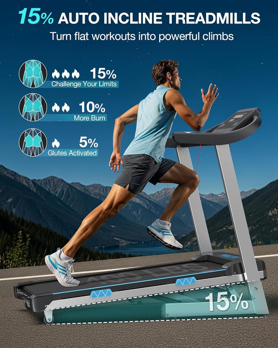 15% Auto Incline – Burn More in Less TimeUpgrade your cardio with an incline treadmill that boosts calorie burn up to 2X. The 0–15% auto incline simulates uphill terrain for fat-burning, endurance, and strength training—without disturbing your household.