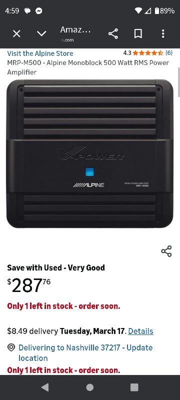 CashAppAlpine amp 500×1 that is under powered with the right power wires and ground it will push over 600 w it can run for hour's and it has a protection mode where if ur subs start to clip it will shut off until u turn the volume down very nice amp get at me and let's make a deal.