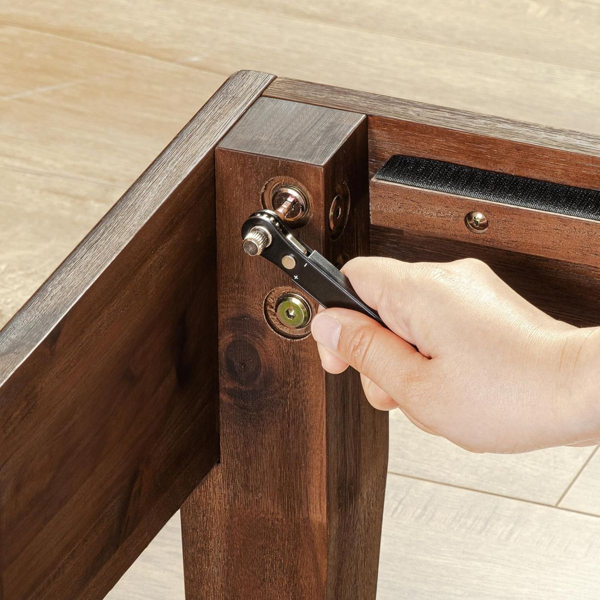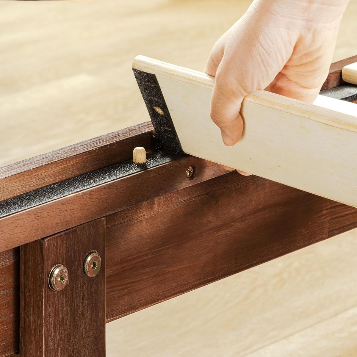 Noise-free construction with non-slip tape on the wooden slats for stability