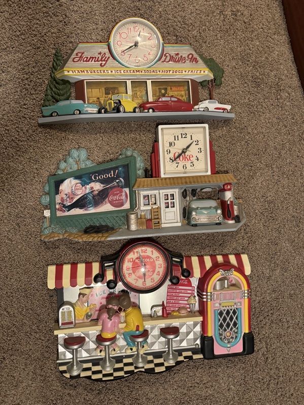 Venmothree Coca Cola clocks. Good shape. $10.00 each of all three for $25.00