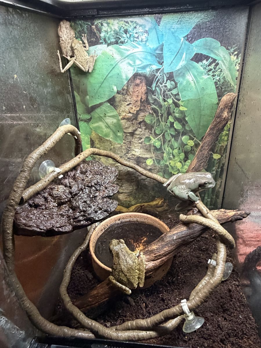 VenmoThere is one Australian Tree Frog and three Cuban Tree Frogs in a 12x12x18 enclosure.