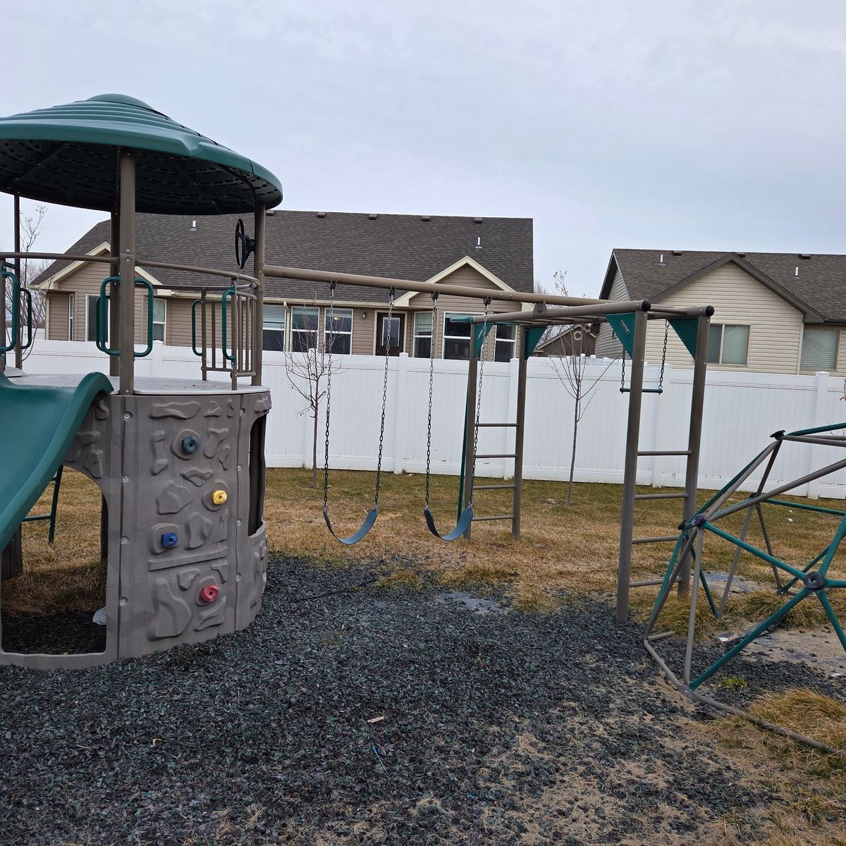 Everything is solid and safe with normal cosmetic outdoor wear. No damage.