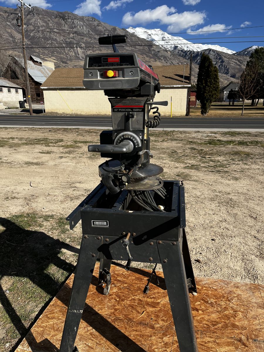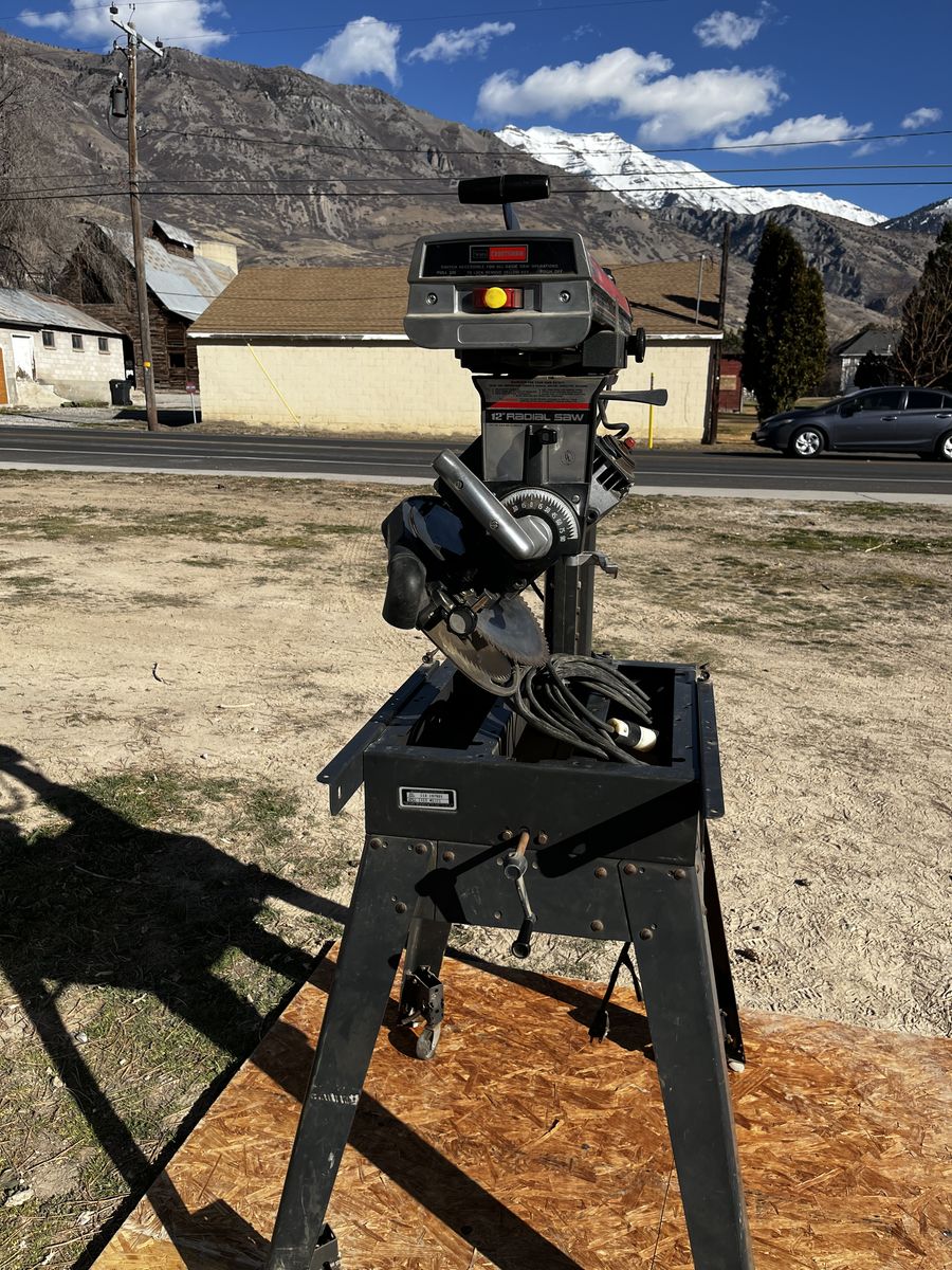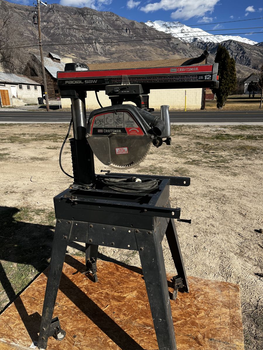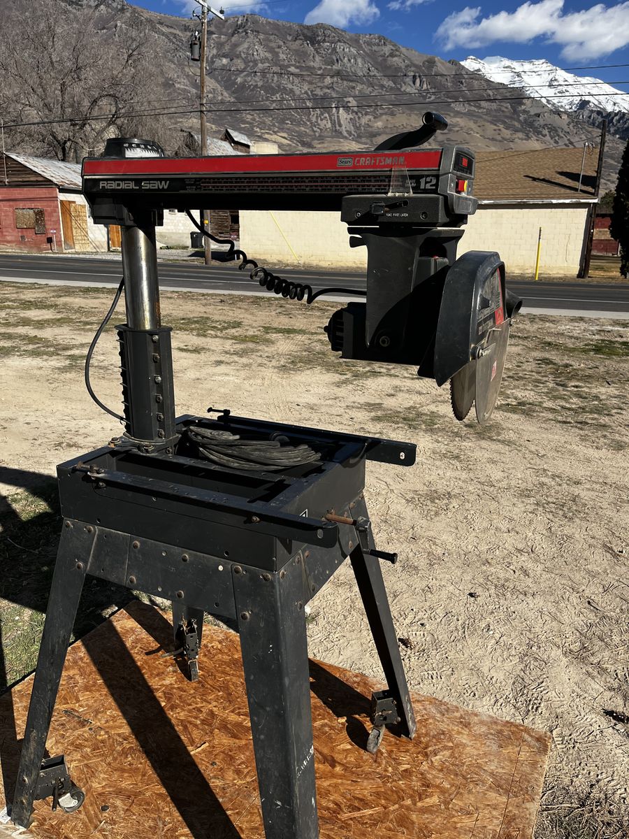 My dad and I bought this radio arm saw and we used it just a few times and his health got bad. you can make casing, base, trim about anything you can imagine, you can see by the picture you can put it in many different positions. Comes with 12 and 10 inch saw blades. $600.00