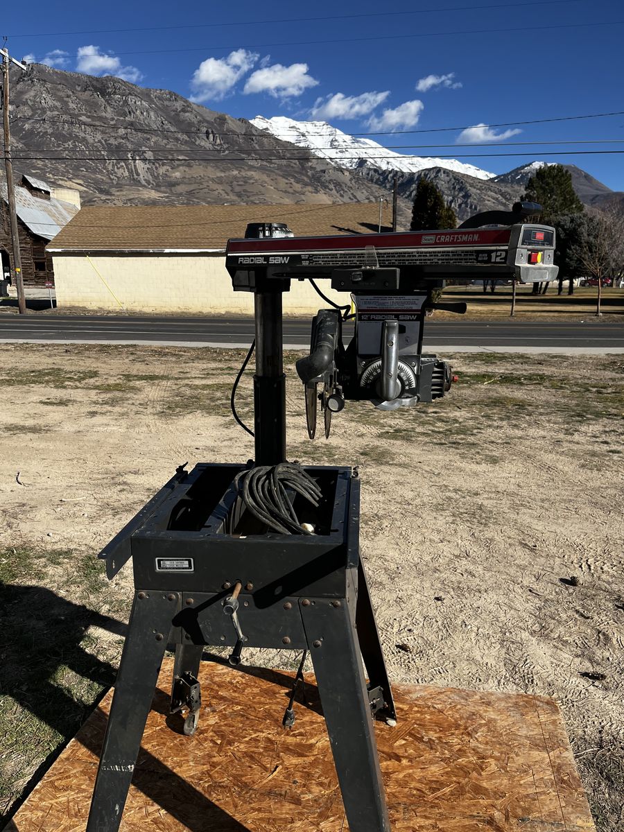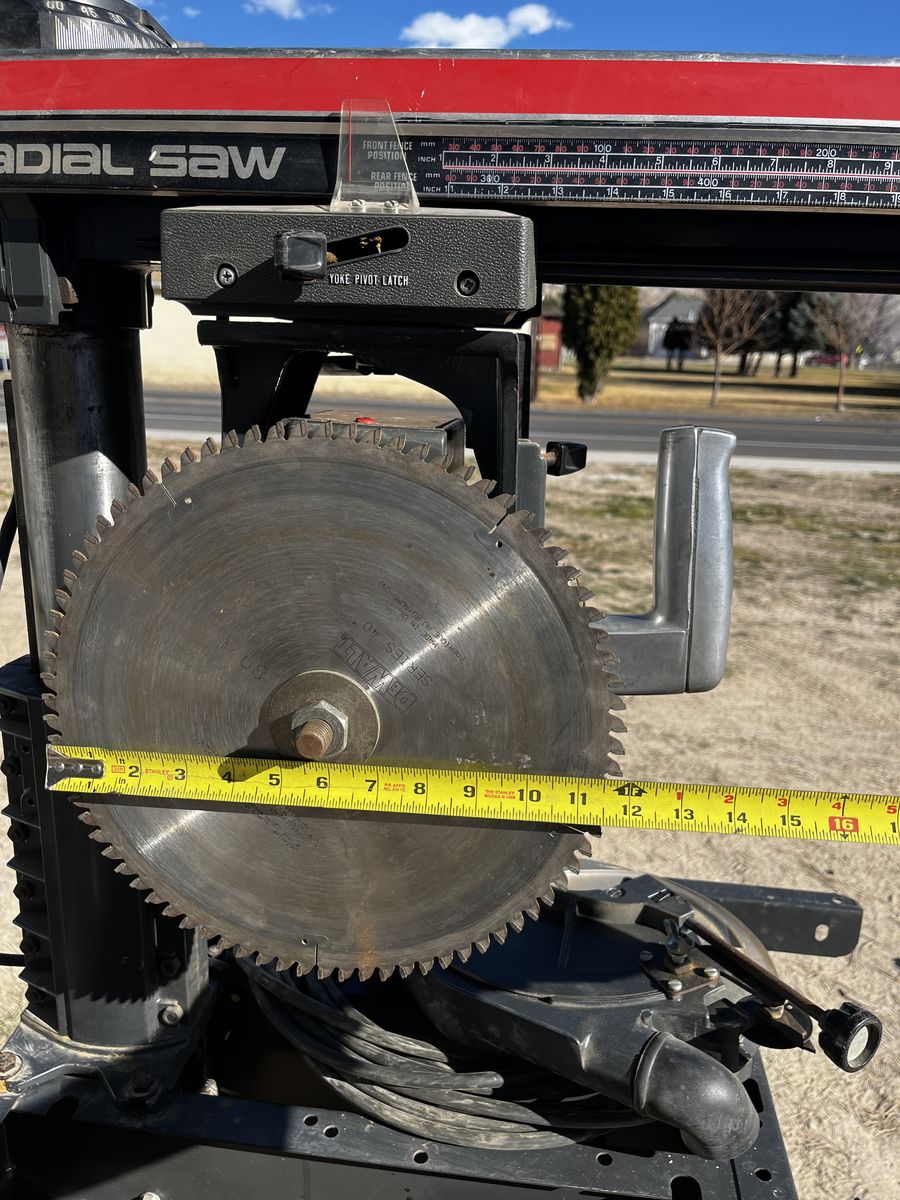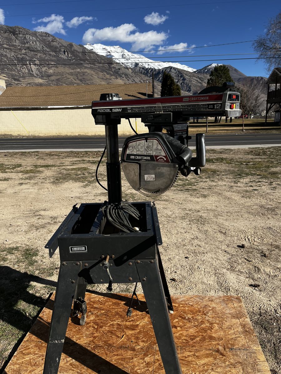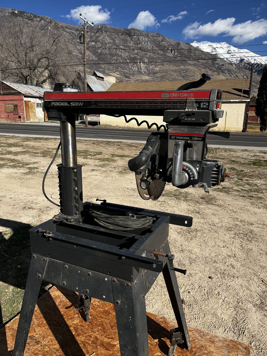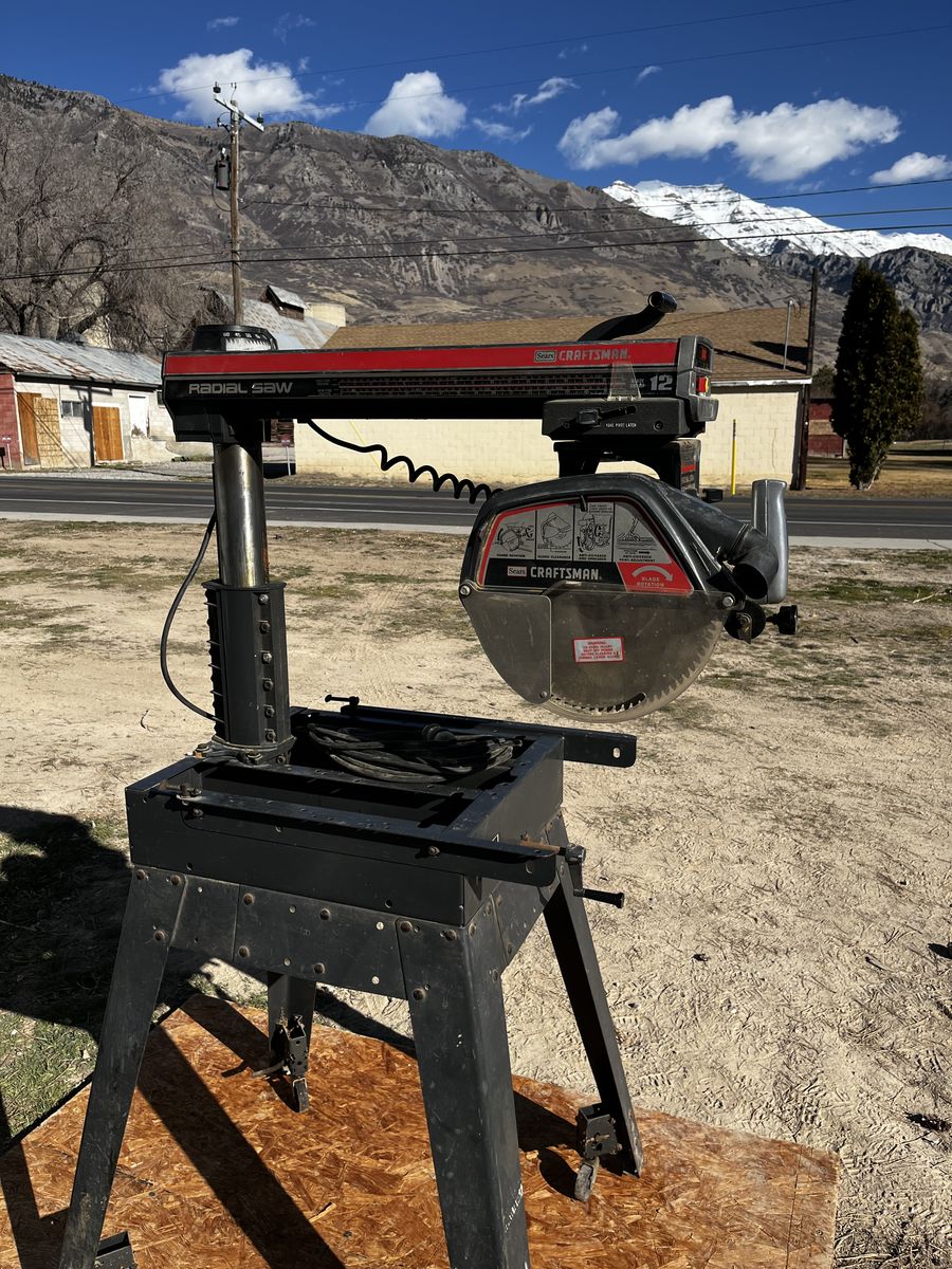 My dad and I bought this radio arm saw and we used it just a few times and his health got bad. you can make casing, base, trim about anything you can imagine, you can see by the picture you can put it in many different positions. Comes with 12 and 10 inch saw blades. $600.00