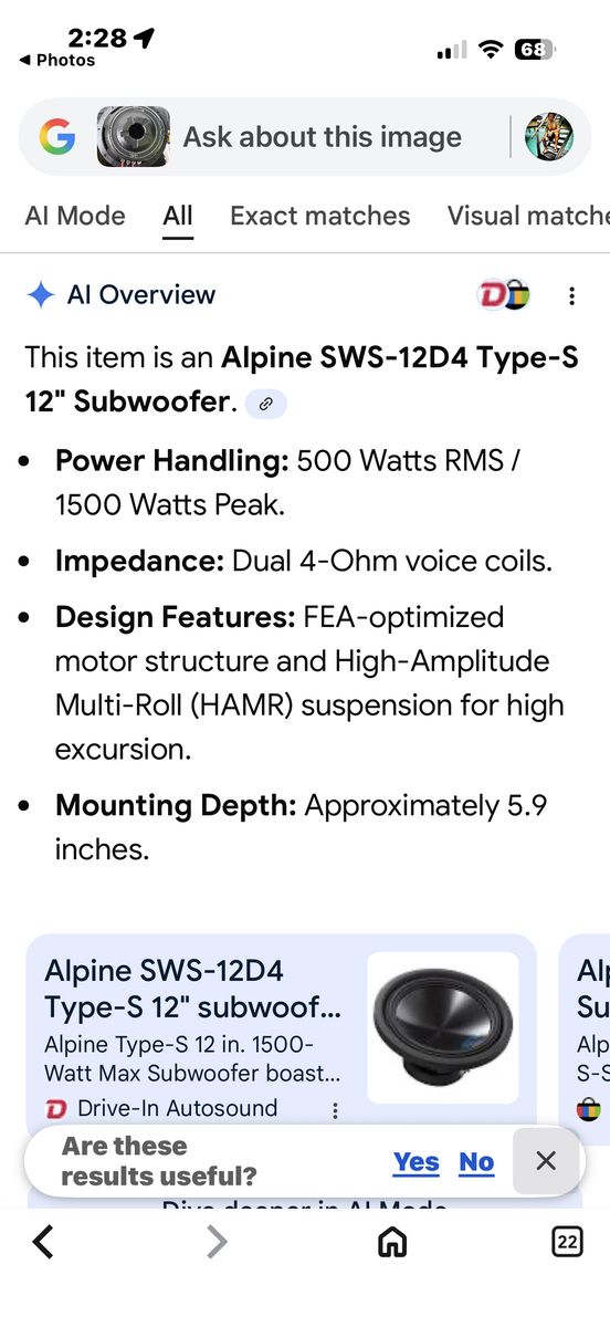 Alpine Type-S SWS-10D2 12” Dual 2- Ohm (DVC) Car Subwoofer