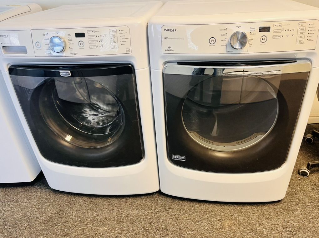 Very nice Maytag maxima series washer and dryer set In excellent condition and very clean, the washers is 4.5 cu ft and the dryer is electric 7.4 cu ft with steam refresh option to remove wrinkles and freshen up your load. They can be stacked or side by side. Only $500 they include a 45 day warranty. I can deliver and install for a little extra. Call 8015403075