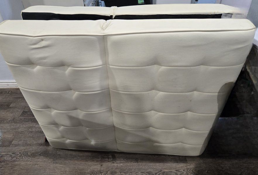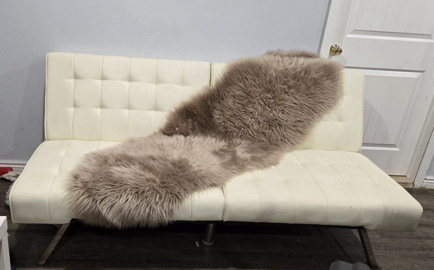 VenmoSelling a modern, low-profile DHP Kebo futon in white faux leather. This is a great space-saver for apartments, dorms, or guest rooms. It features a "click-clack" mechanism that easily converts it from a sofa to a lounger or a flat bed. Key Features: Material: Durable white PU faux leather (easy to wipe clean). Design: Modern tufted look with sleek chrome-style legs. Multi-functional: 3 positions (Sofa, Reclined Lounger, or Sleeper). Condition: Used but clean. No major rips or tears. Comes from a pet-friendly home (see photos for scale). Dimensions: Sofa: 69"L x 32"W x 29"H Bed: 69"L x 38"W x 14.5"H Weight Capacity: Supports up to 600 lbs. Pickup Info: Lightweight and easy to move. The legs can be unscrewed and stored in the built-in zippered compartment underneath for easy transport.