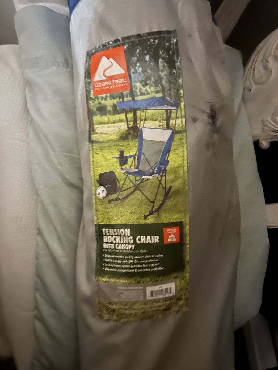 VenmoOzark Trail Rocking Camp Chair with Canopy – Blue/Grey – $50