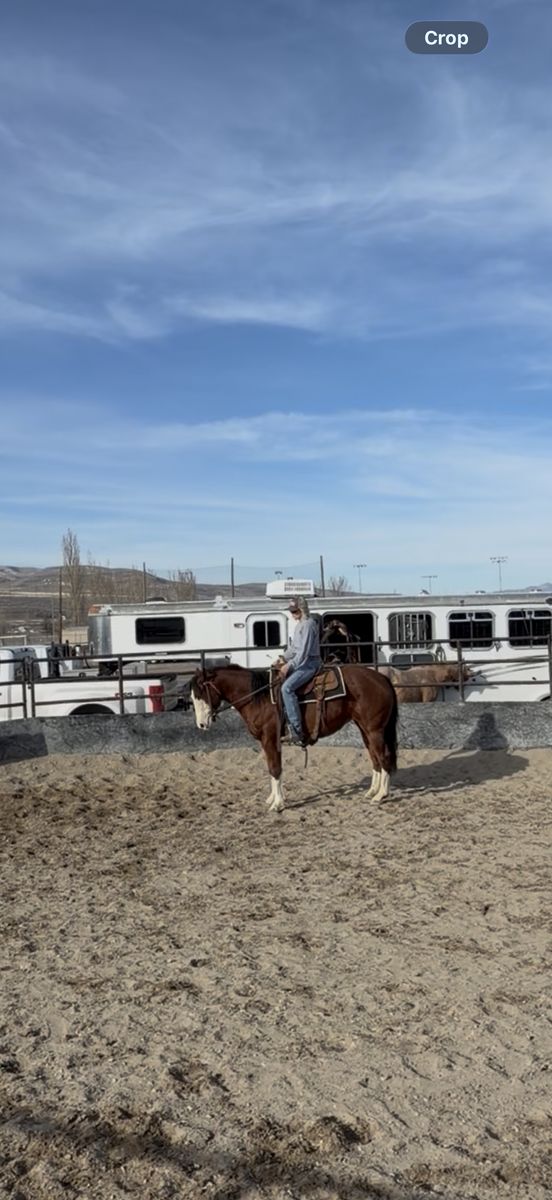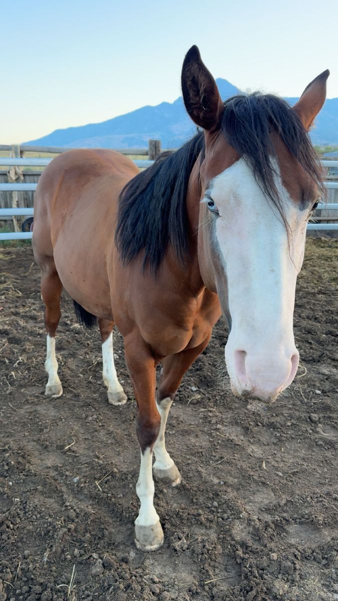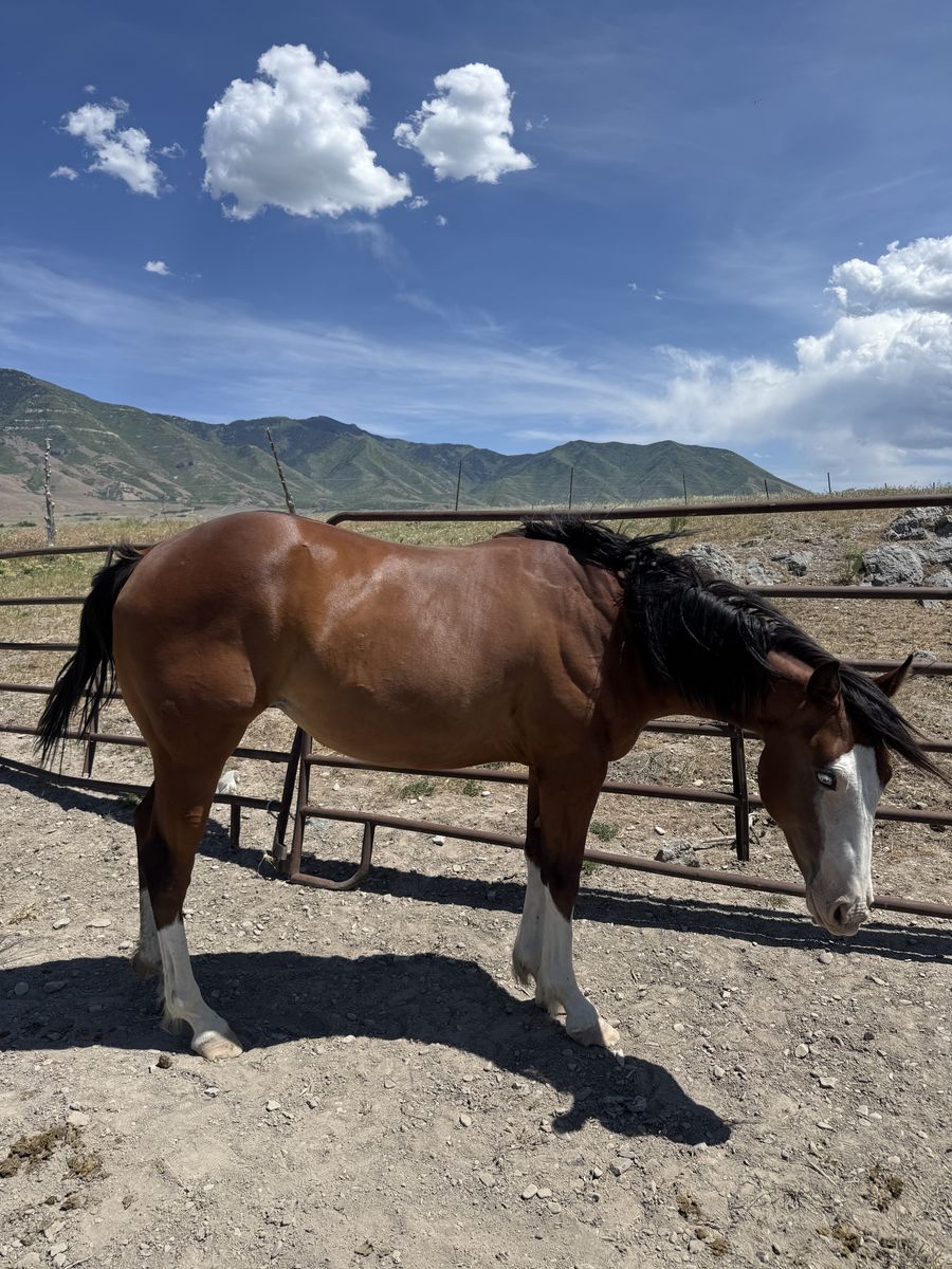 Coming 3 year old bald face mare. She has been started but haven’t had the time to get her going to far. Maybe 15 rides. Going to be a pretty thick/big mare. Stands tied, I’ve trimmed her a few times and she’s never given me grief. Super sweet and personable mare.. always the first to meet you at the gate. No bad habits. No bucks. Just green. 14.3 hands. Bought her to breed but have to sell for medical bills unfortunately.