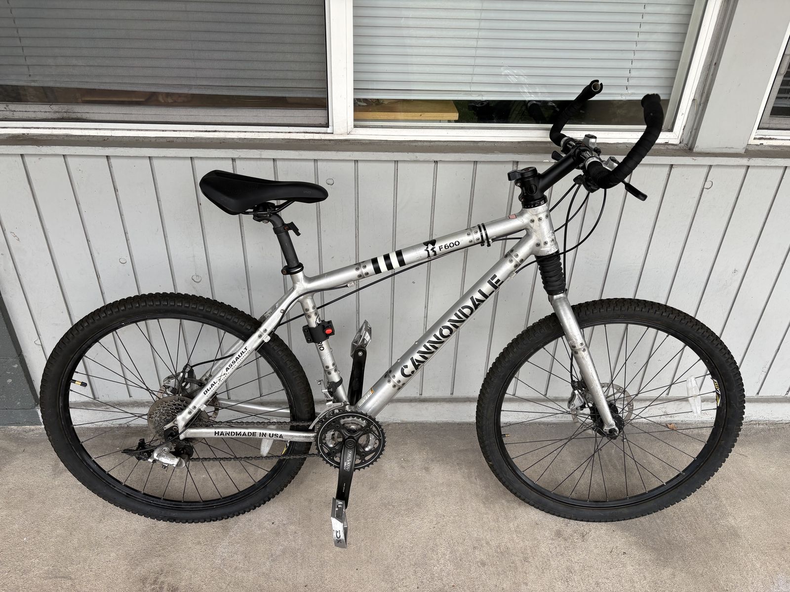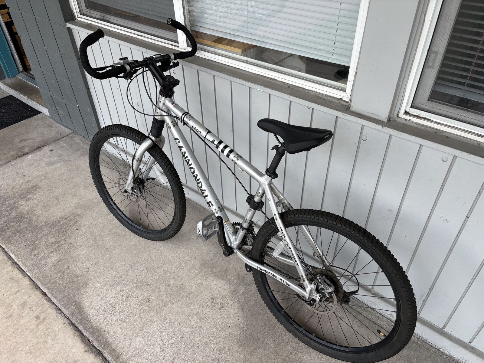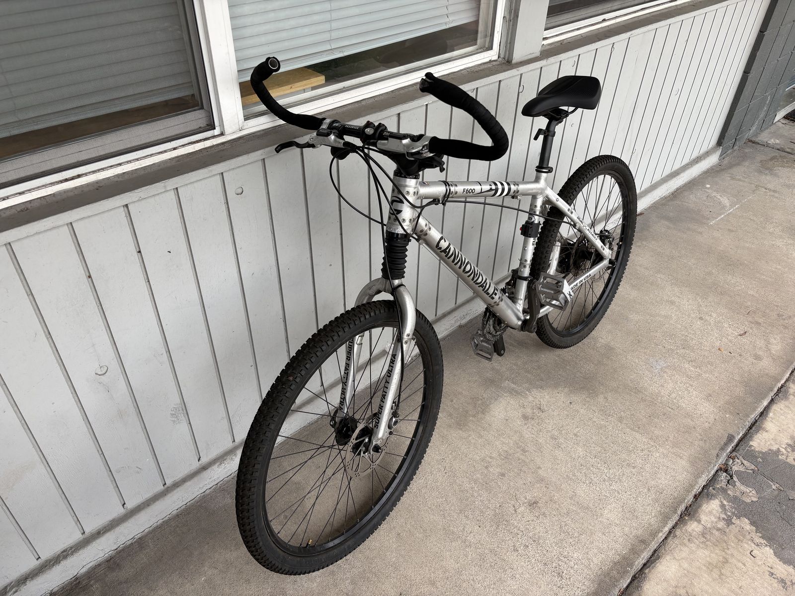 VenmoSilver Cannondale F600 mountain bike. Has front suspension, Super Fatty Ultra fork. Disc brakes on both wheels. Handmade in USA. Fastback handlebars with bar ends. Tires are in good condition and has a brand new seat. Good for trails or cruising around.