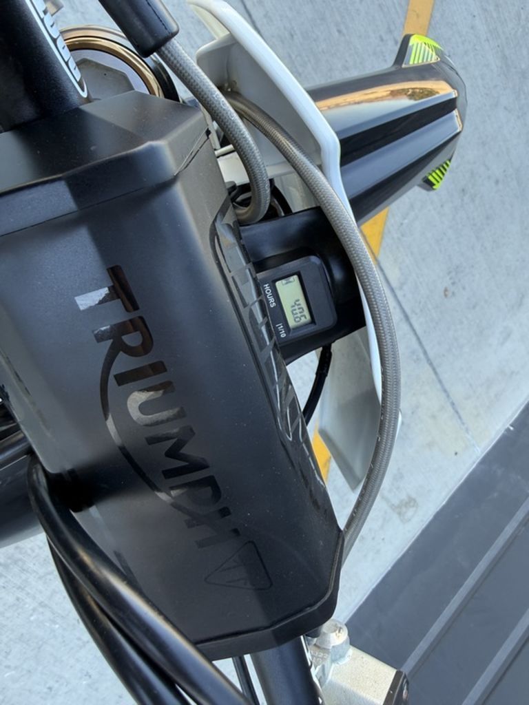Instantly identifiable on the podium, the striking and dynamic Triumph Racing Yellow, Black, and White trim sets the TF 250-X apart from the pursuing pack.