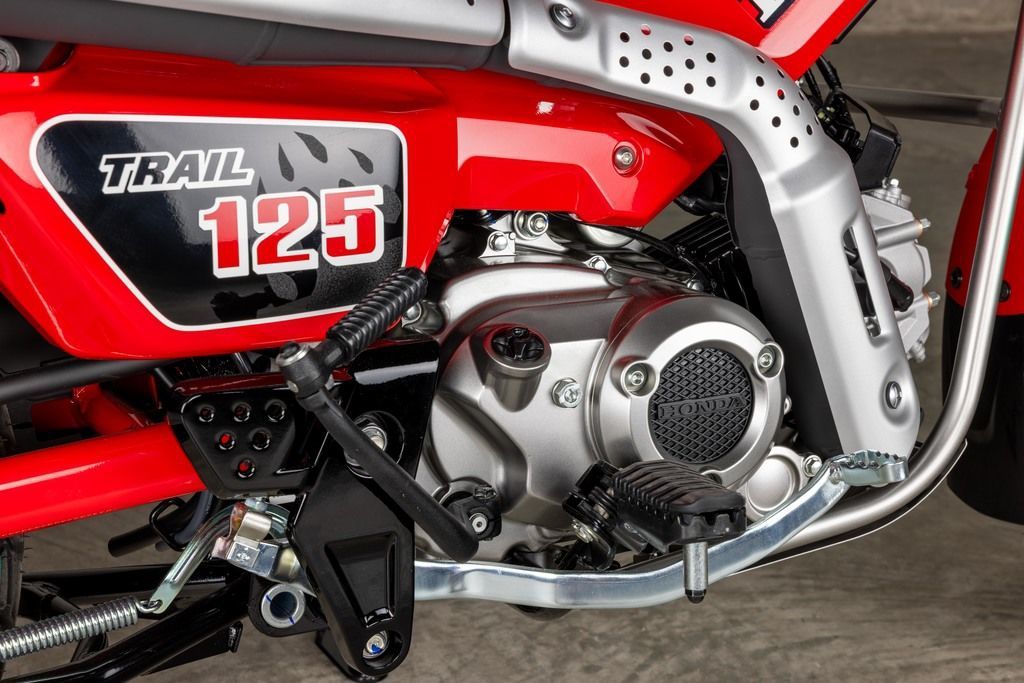 2025 Honda® Trail125Step up your explorer gameInspired by the iconic Trail 90 and Trail 110, the Trail125 combines retro charm with modern tech, now in Glowing Red and Pearl Smoky Gray. Our rugged 125cc fuel-injected engine, front-wheel ABS, and versatile rear cargo rack deliver easy handling and endless fun, making it the perfect two-wheeled miniMOTO fun machine.Features may include:Easy to parkBecause of its compact size, parking in the city is easy, as is loading and unloading it from a vehicle or storing it when you're not riding.Hydraulic disc brakesSingle-disc brakes – 220mm front and 190mm rear – combine for excellent stopping power. And the increased safety of standard front-wheel ABS gives riders added confidence.Cargo rackGear up for fun with the large rear cargo rack. Additional cargo racks for the center and above the headlight are available from our accessory line for even more storage so you can prepare for whatever lies ahead.