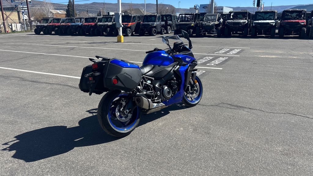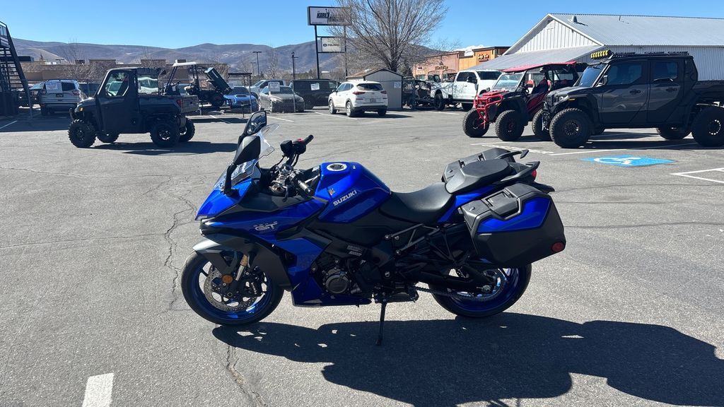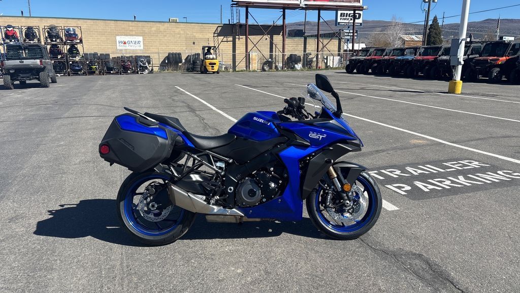 2026 Suzuki GSX-S1000GT+ The 2026 GSX-S1000GT+ blends sportbike performance with long-distance touring comfort, delivering Suzuki’s signature reliability alongside advanced cargo and electronic features. Powered by a GSX-R1000-derived engine, the GT+ delivers smooth, responsive power across the rev range—making overtaking effortless and enjoyable. Enhanced by the Suzuki Intelligent Ride System (S.I.R.S.), the GSX-S1000GT+ offers refined performance and rider-focused convenience. The advanced rider aids of S.I.R.S. include Smart Cruise Control, Bi-directional quick shifting, and adjustable traction control and power modes to ensure every ride is smooth and thrilling. Features may include: Engine The GSX-S1000GT+ is propelled by a high-performance 999cc, four-stroke, DOHC, liquid-cooled, in-line four-cylinder powerplant based upon Suzuki’s championship-winning GSX-R engine architecture. Suzuki’s legendary Twin Swirl Combustion Chamber (TSCC) design is machined into the cylinder head that, with the flat-top pistons, achieves an optimal 12.2:1 compression ratio that helps deliver a broad spread of power throughout the entire rev range. Transmission Like a GSX-R1000, the GSX-S1000GT+’s race-proven, six-speed, close-ratio transmission features vertically staggered shafts to reduce overall engine length. The Suzuki Clutch Assist System (SCAS) clutch increases plate pressure under acceleration, yet acts as a slipper clutch to smooth the engine response during engine braking and corner entry. Chassis Suzuki’s proven, twin-spar aluminum frame helps to ensure nimble handling and great road-holding ability. The main spars are positioned straight from the steering head to the swingarm pivot, which promotes higher rigidity and lighter weight. Fully adjustable front and rear suspension with suspension spring rates and damping force tuned specifically for the GSX-S1000GT+. Electrical Providing key Suzuki Intelligent Ride System (S.I.R.S.) information to the rider is a, easy-to-read Thin Film Transistor (TFT) Instrument Panel that brings Suzuki-exclusive mySPINTM connectivity features to the GT+. The five-mode Suzuki Traction Control System (STCS) continuously monitors front- and rear-wheel speed, engine RPM, throttle position, and gear position to adjust engine output to prevent undesired rear wheel spin. Body & Styling From designer concept to wind-tunnel tuning, the GSX-S1000GT+’s sharp lines, radical front face, and aerodynamic good looks all speak to the sporty soul of this GT machine.