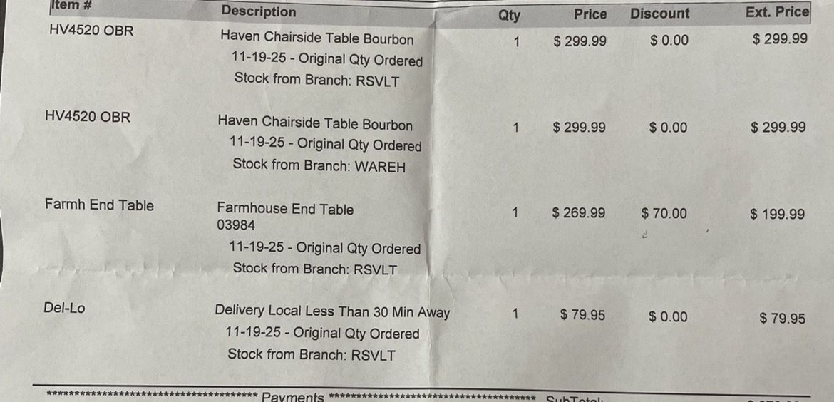 VenmoI have 2 Haven chairside tables brand new only 2 months old $150 each in the pictures. I’ve included the receipt to show you what I paid they were purchased 11/21/26 I can arrange delivery, but would require them to be paid for before I would deliver them.