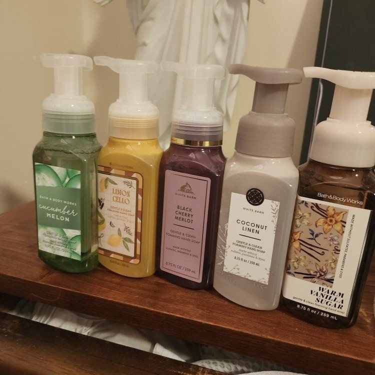 VenmoJust bought these . I have 24 Foaming Foaming soaps. I have 3 Kitchen Lemon. 1 Lemon Cello. 2 Strawberry Kiwi 2 . 2 Strawberry Tangerine. 1 Cucumber Melon. 4 Mango Mandrin . 2 Raspberry Tangerine. 1 Cotton Linen . 1 . 3 Warm Vanilla Sugar. 3 Vanilla Coconut. 1Watermelon 1 Ice Pound Cake. Lemonade 1 Starfish Tangerine I missed any . they are listed above in the pics. Hope I got them all