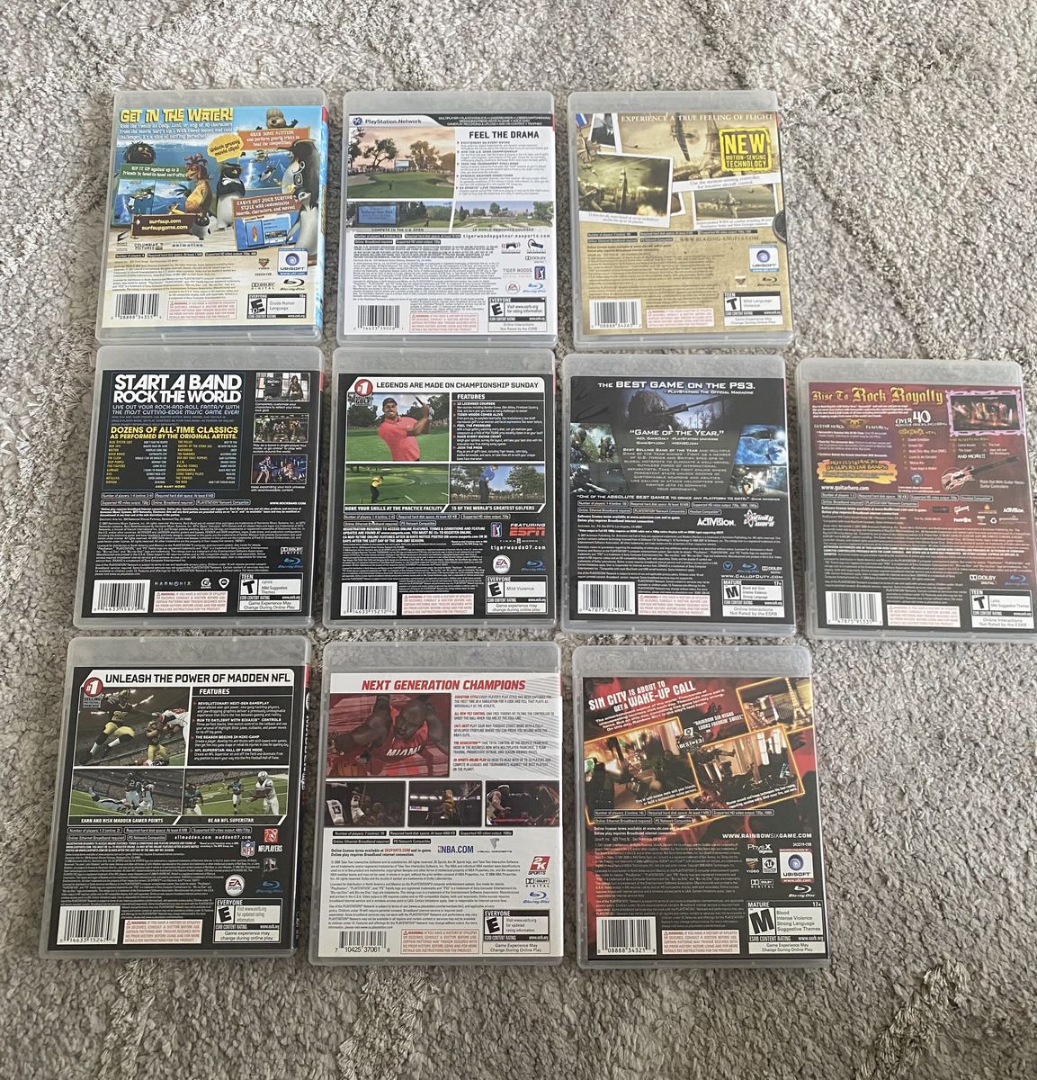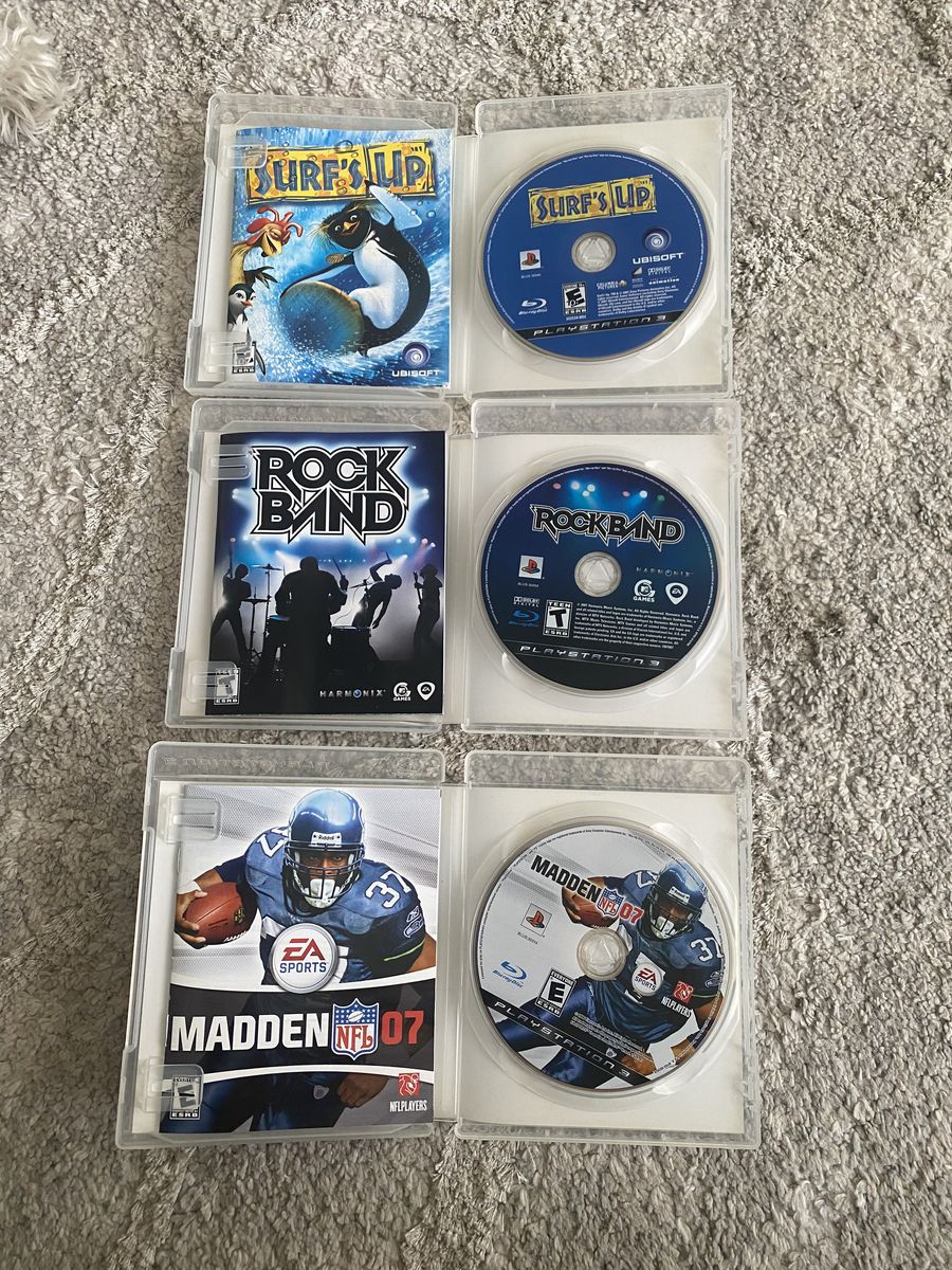 Surf's Up, Rock Band, Madden NFL 07, Tiger Woods PGA Tour 10, Tiger Woods PGA Tour 07, NBA 2K7, Blazing Angels Squadrons of WWII, Call of Duty 4 Modern Warfare, Rainbow Six Vegas Tom Clancy's, Guitar Hero Aerosmith